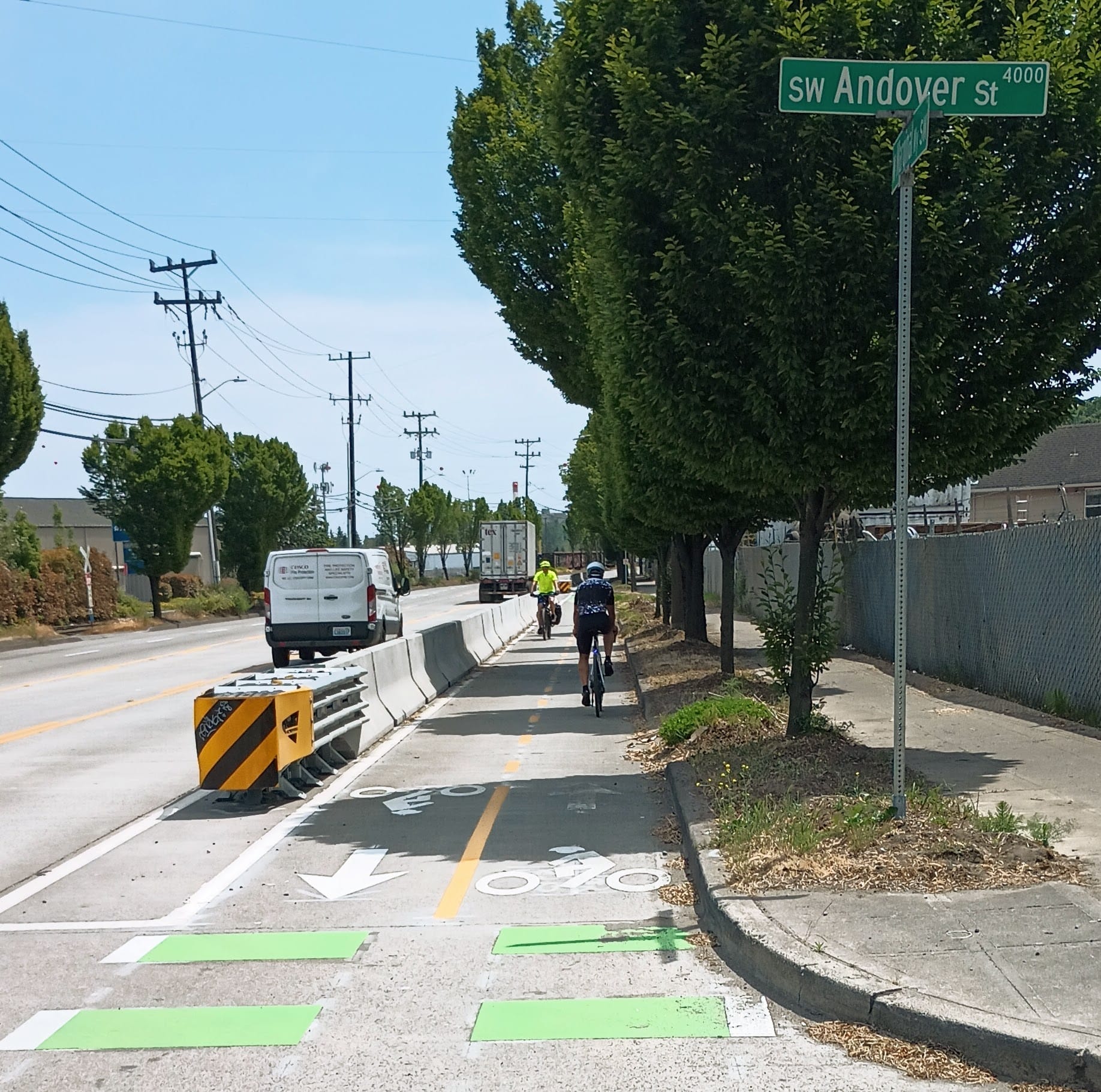 That September, an agreement signed between the Port of Seattle and SDOT providing funding for the repair of the West Seattle Bridge included a stipulation on West Marginal Way — the bike lane would not be installed before the bridge was open. Ultimately, that is what ended up happening, with installation this April even as the freight advisory board continued to raise concerns.