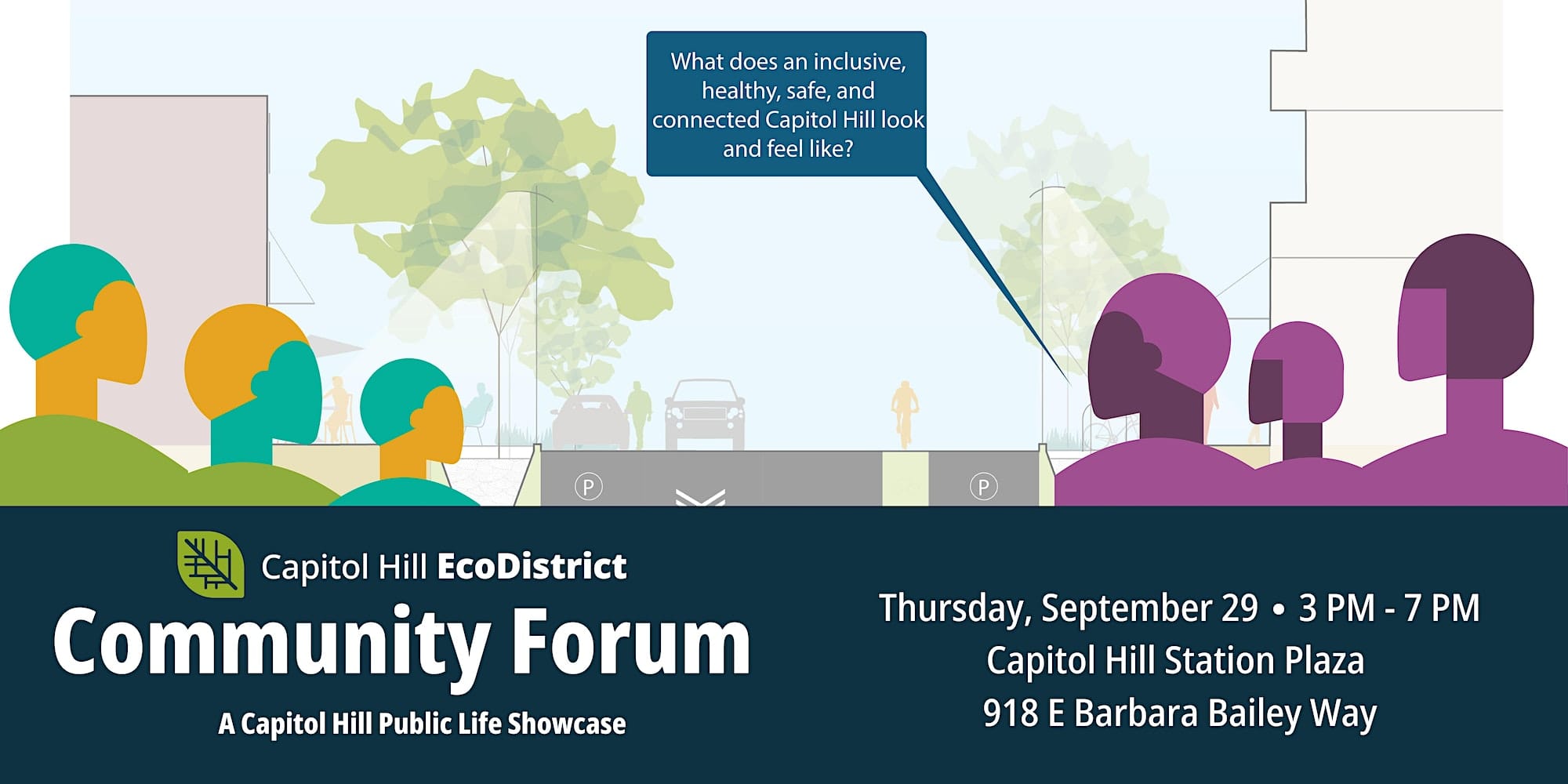 Capitol Hill EcoDistrict Community Forum, Thursday, September 29th, 3-7pm, at Capitol Hill Station Plaza (918 E. Barbara Bailey Way).