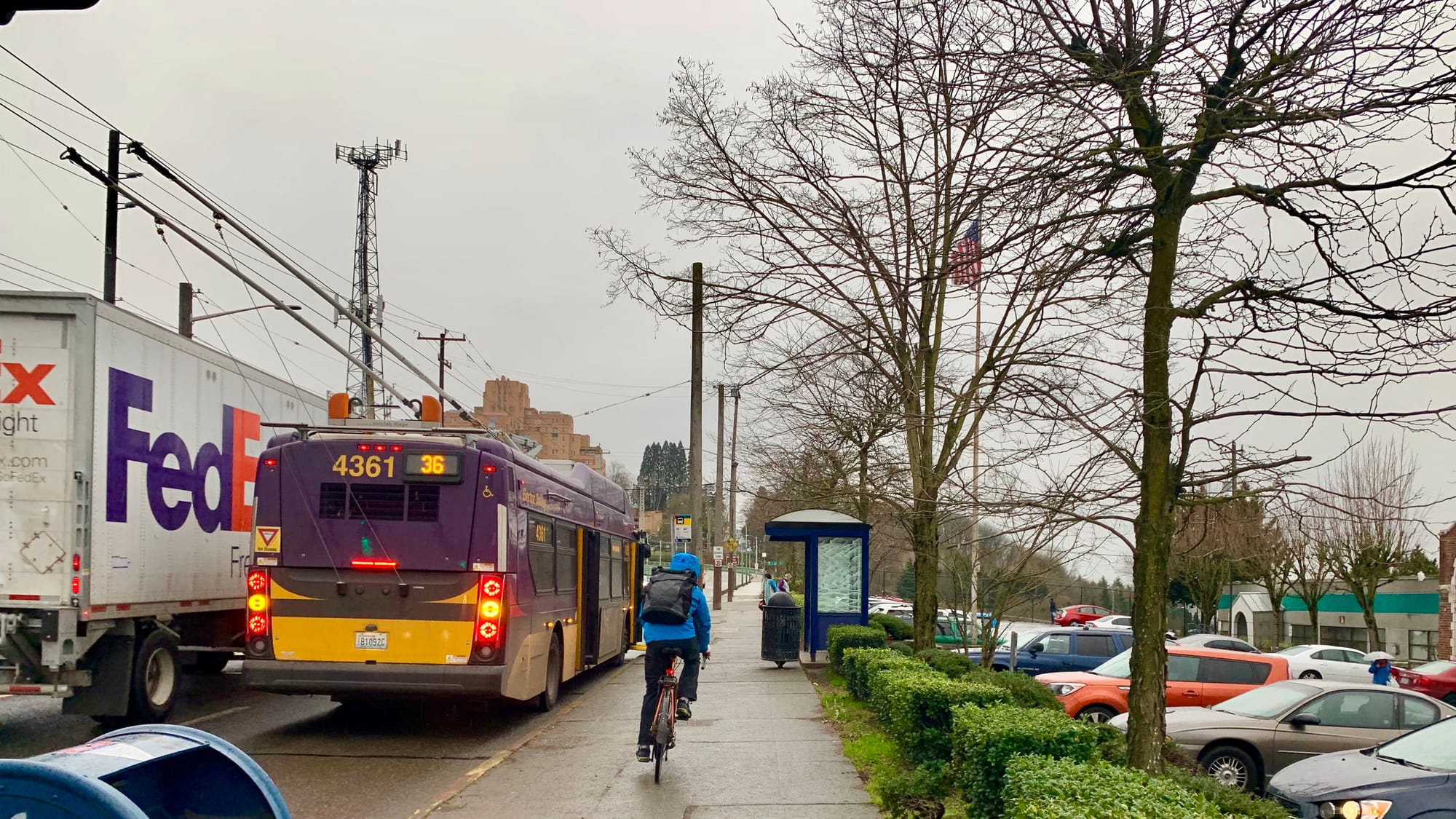A protected bike lane all the way from the Mountains to Sound trail at the north tip of Beacon Hill to Yesler Way would truly connect Seattle’s separated bike facility network: Yesler Way includes a connection to the protected bike lanes on Broadway and beyond. But there are no plans to bridge that gap, due to the disruption that SDOT says it would have on the traffic network, particularly on operations of the First Hill Streetcar, which runs in mixed traffic on Yesler Way and South Jackson Street.