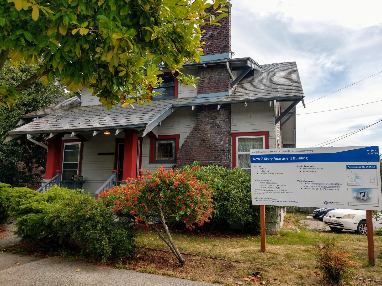 Craftsmen with 7 Story Proposal Sign