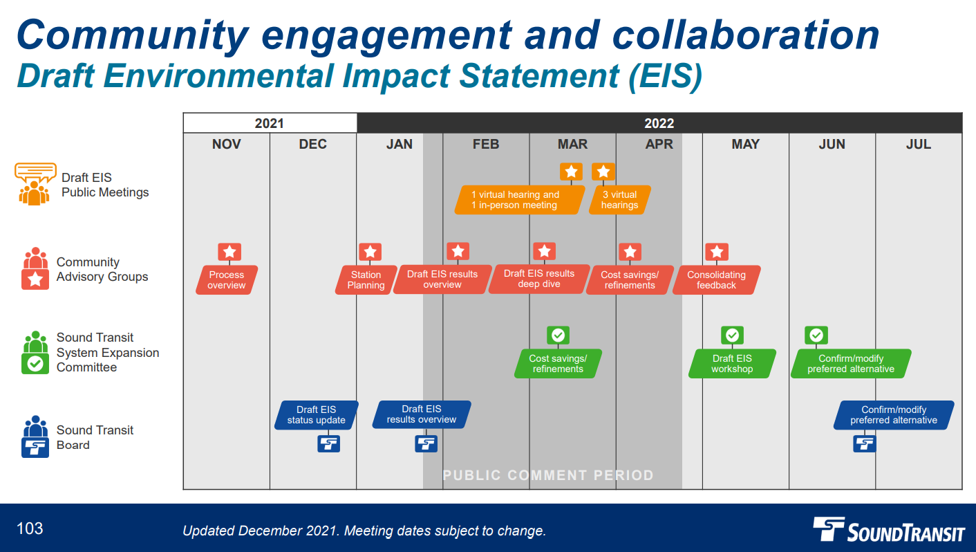Unfortunately, super deep stations and awkward elevated alignments that require expensive land takings could be a recipe for further cost increases and engineering delays. It’s not too late, however, to correct course and fine tune the plan, as Sound Transit opens a round of public comment and engagement with the release of the DEIS.