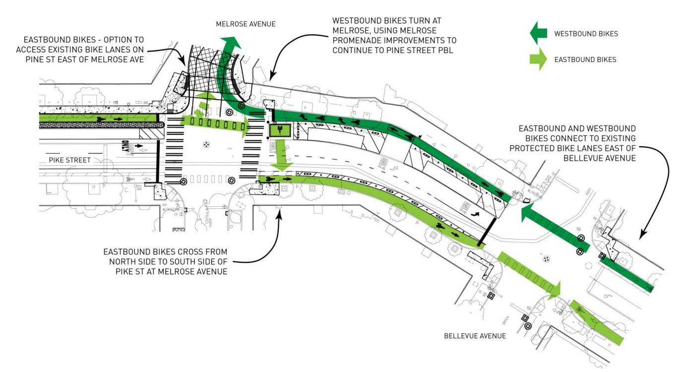 Ultimately, it was concerns from residents and safe streets advocates that were able to prompt the department to rethink things at this spot. “These changes will make the street more comfortable for people walking, biking, and rolling,” the department said as it made the announcement earlier this month in a blog post. “They’ll also address issues of illegal parking and illegal left turns from E Pike Street onto Melrose Avenue.”