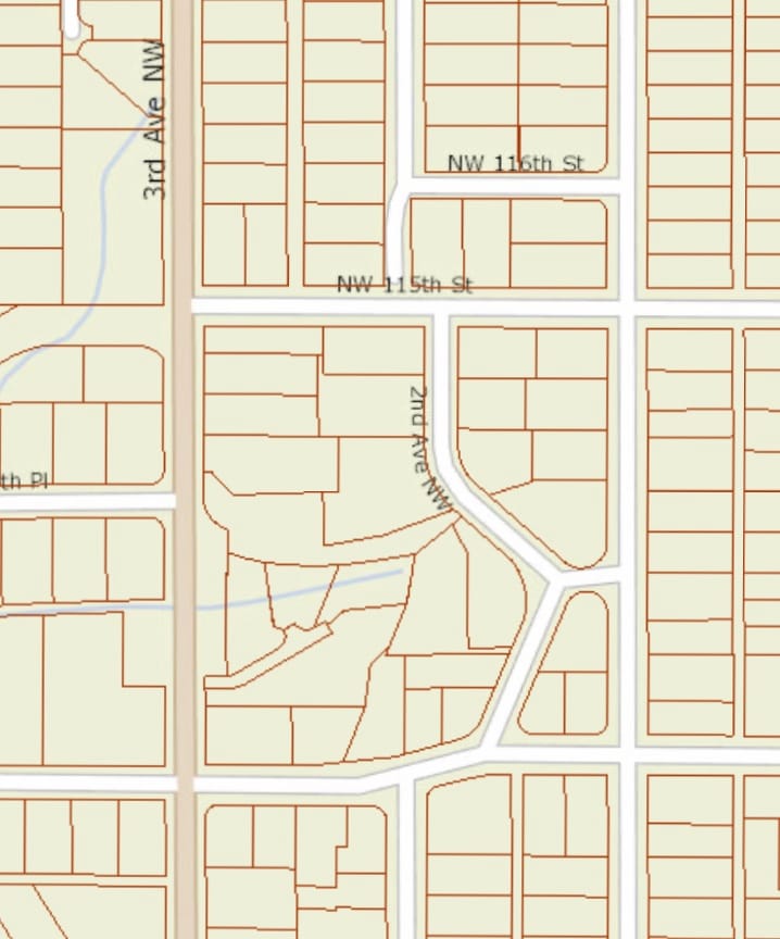 Zoom into a level where you can see the property lines (it helps to turn off the address dots). And just start looking around. Screen capture your favorites. Please include enough surrounding info so we can understand the location of the lot.