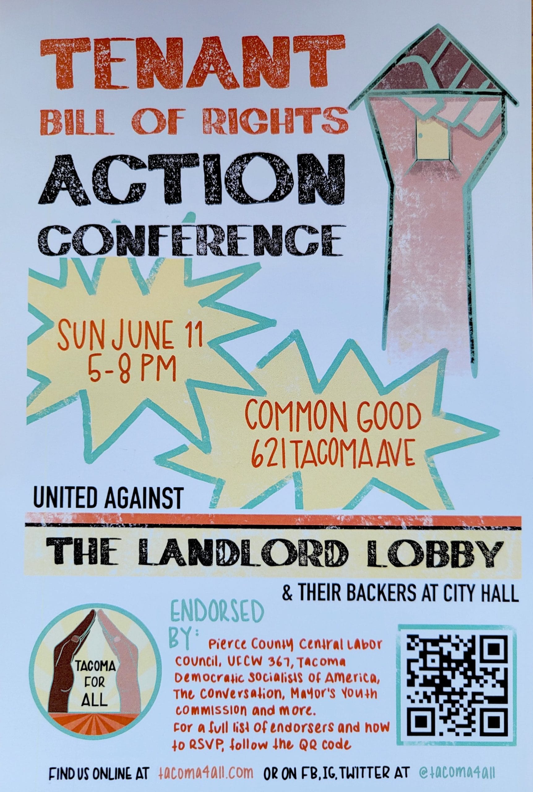 On June 11th, Tacoma for All will host a Tenants Rights Action Conference to democratically decide whether to accept compromises from the City or submit the signatures and go head to head with the City’s alternative. In contrast to the City of Tacoma, and for the sake of transparency, the event will be open door and everyone is welcome to share their thoughts. Of course, visit their website and social media accounts to sign up for updates.