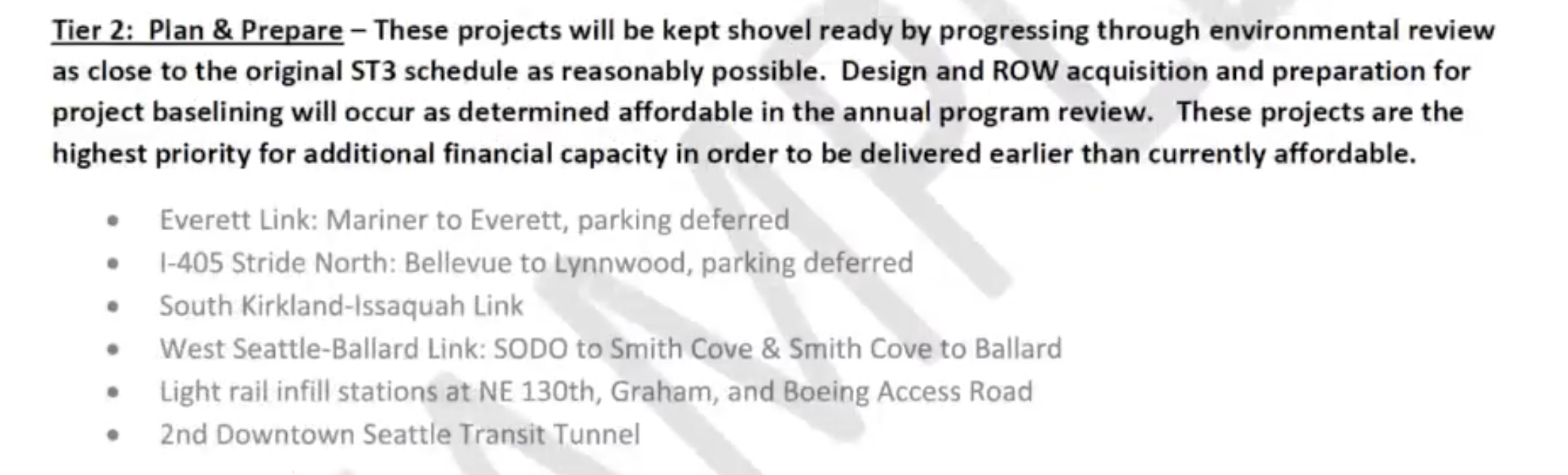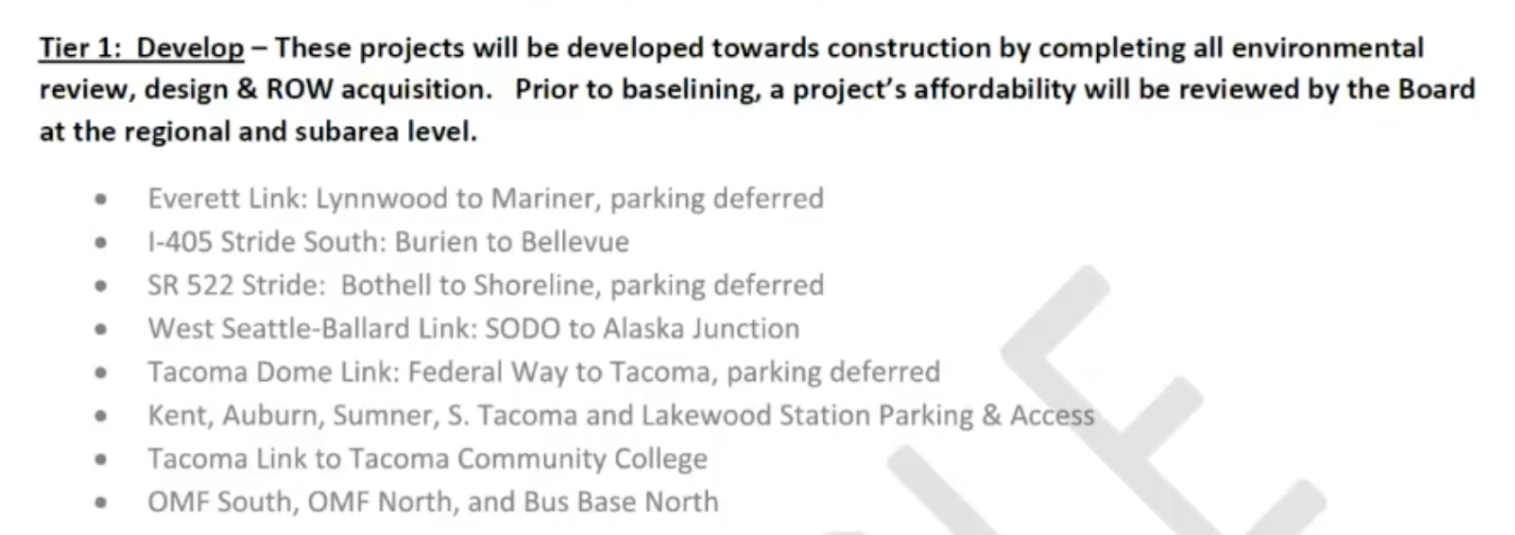 Despite these critiques and real issues, University Place Councilmember and Board Chair Kent Keel, refused to reconsider the process and was clear that things are full speed ahead. His intention is to bring forward a consensus resolution on project tiering and timing in the coming weeks. Ultimately though, how the realignment process is unfolding seems deeply irresponsible with so little information to make decisions, but boardmembers outside King County appear ready to leap blindfolded into a premature realignment anyway.