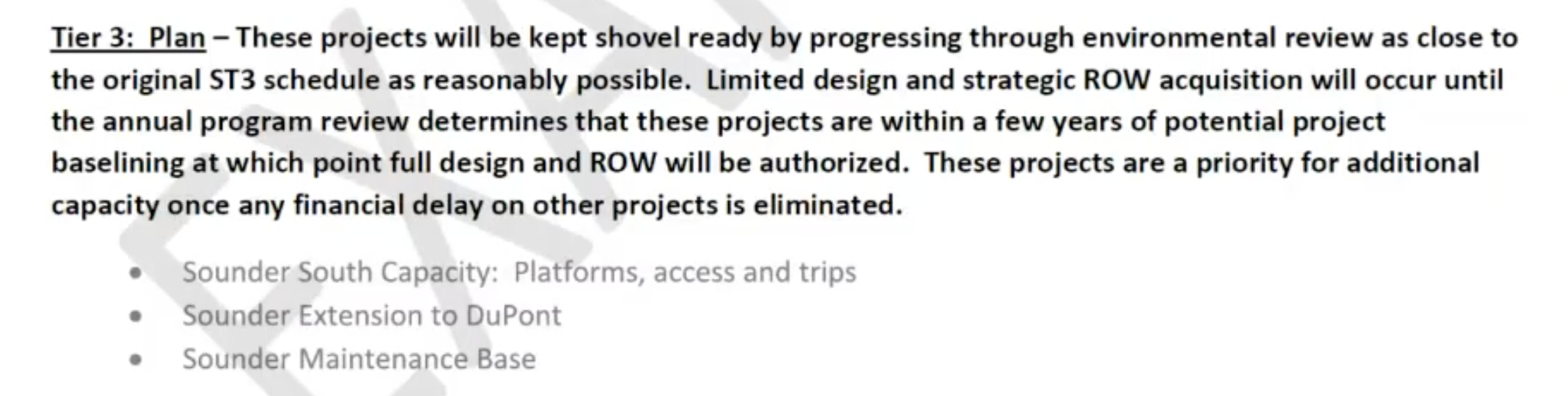 - Create four tiers for programmatic timing and actions of Sound Transit 3 projects.