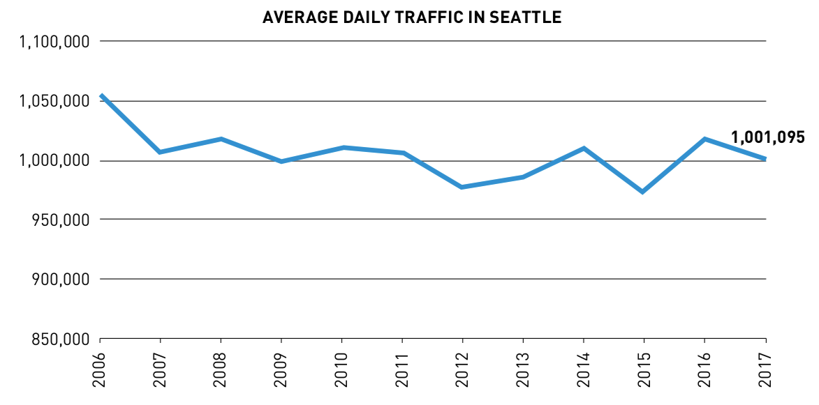 Such a development would fly in the face of the progress Seattle has made in recent year toward reducing the amount of vehicle trips made in the city. At the same our population has boomed, the number of vehicle trips has decreased while public transportation use has increased.