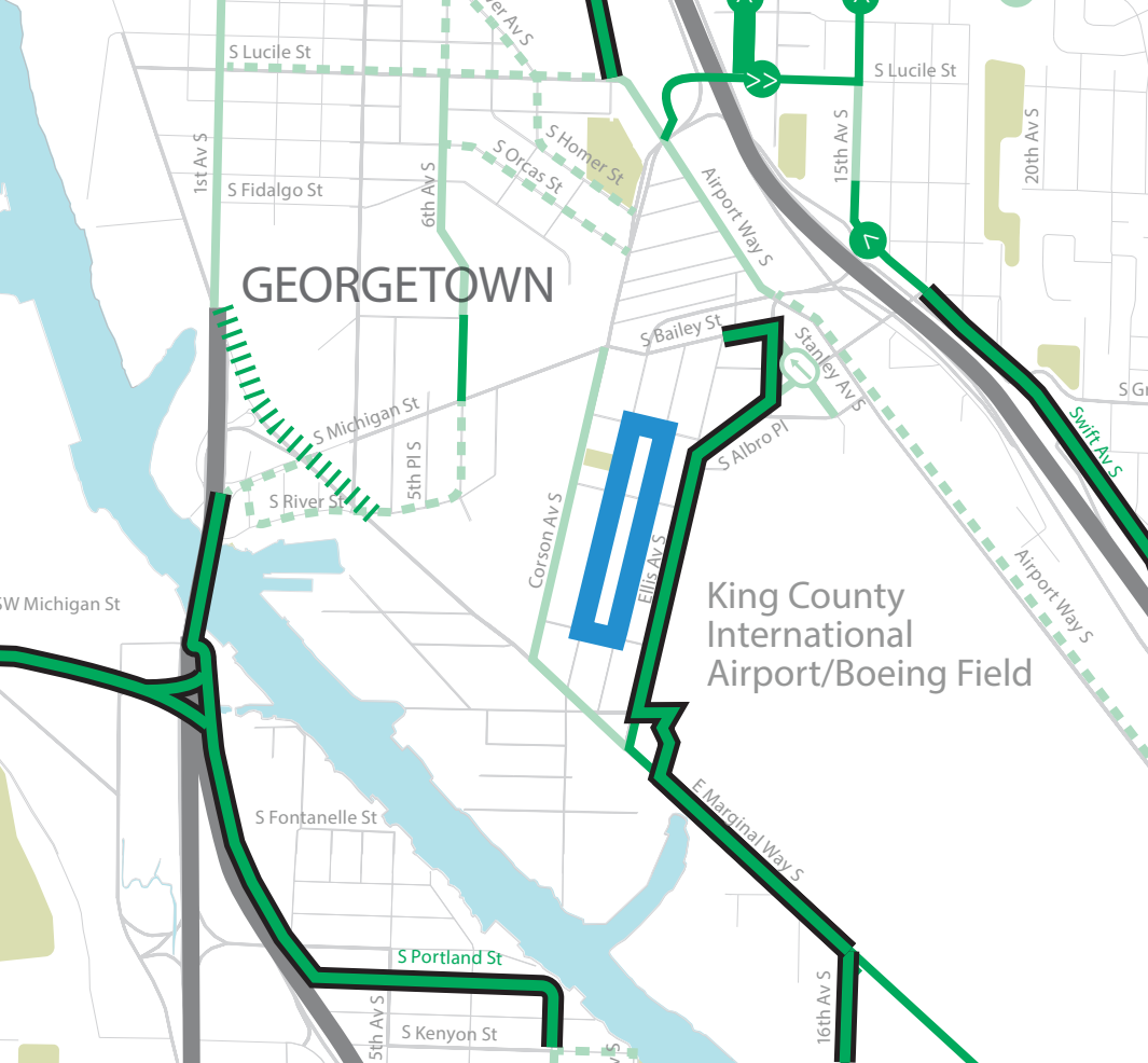 The Seattle Department of Transportation (SDOT) is finally getting close to completing the Georgetown to South Park Trail, which will fill in a longstanding glaring gap in multimodal infrastructure in the Duwamish Valley. But a new project coming down the pike has the potential to extend the reach of that new connection even more.