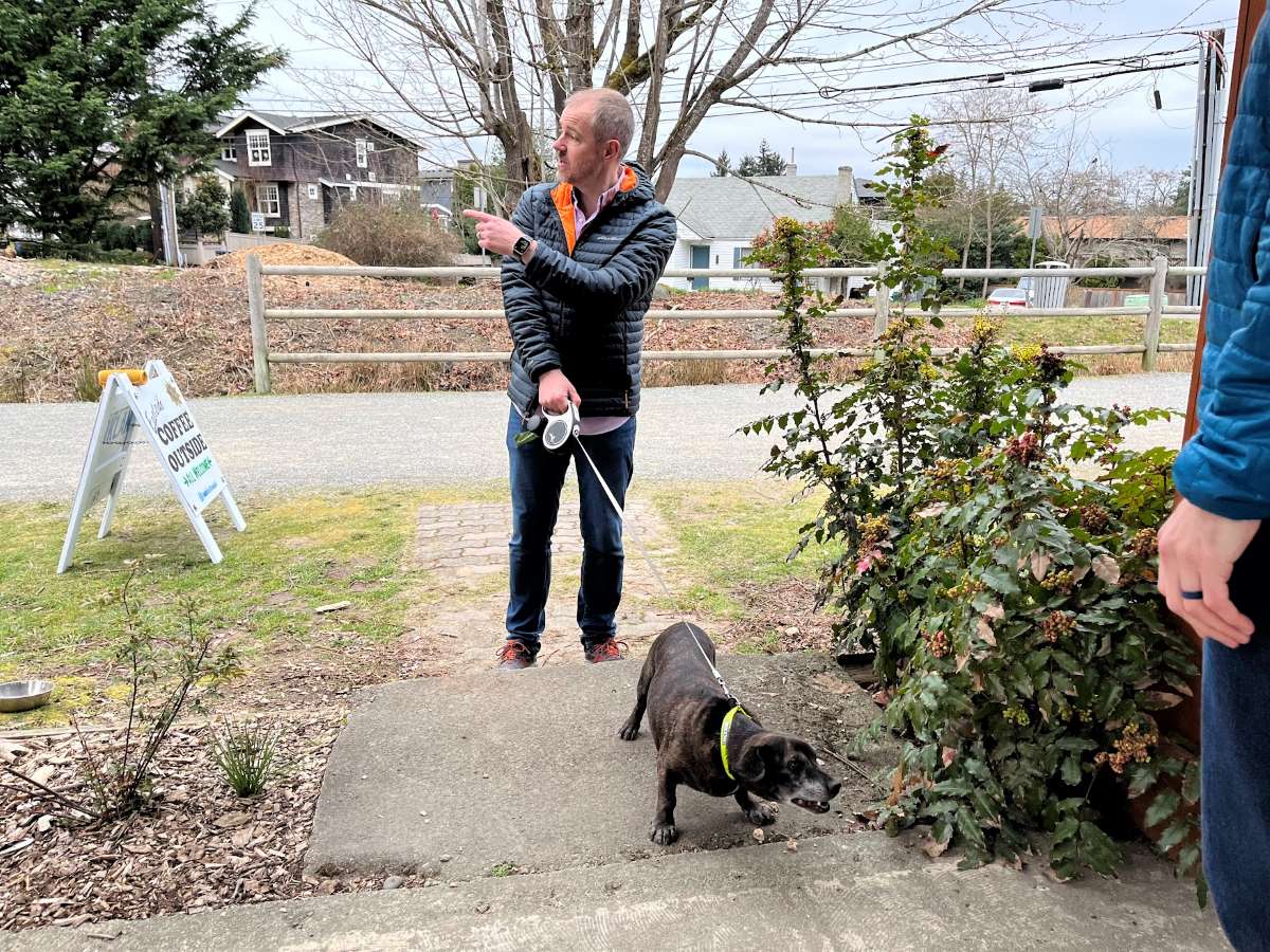 I started Eastside Coffee Outside with the help of Charlie Liban, a Kirkland resident living car-free near Totem Lake. I had seen a video that featured a Coffee Outside gathering in Edmonton, Alberta, and the community-first concept really spoke to me. I sent the video to Charlie saying, “we should do this here.” He agreed immediately and we held our first event less than a month later.