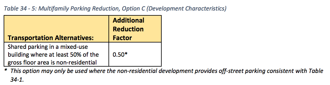 - Bicycle parking. New bicycle parking requirements will apply whenever non-residential developments are required to provide six or more off-street parking spaces and multifamily developments contain four or more dwelling units. The bicycle parking ratio will be set at one for every 12 off-street parking spaces provided in non-residential developments, with an upper maximum of 20 bicycle parking space required. In multifamily developments, the ratio is generally four covered bicycle parking spaces for every 10 dwelling units. New bicycle parking guidance also provides specificity in the location of spaces, access to them, and their design requirements.