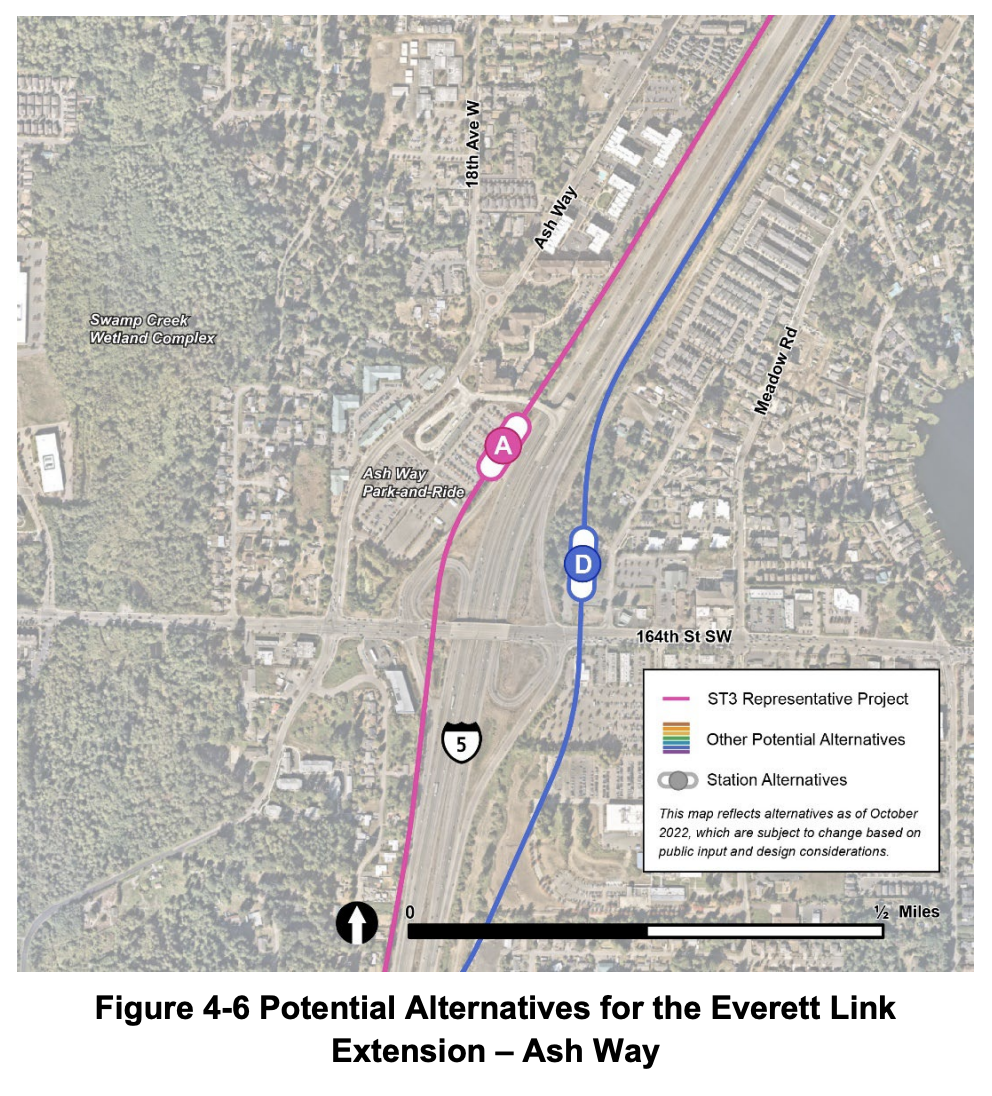 - Alternative ASH-D would locate an at-grade station on the east side of I-5 just north of 164th Street SW.