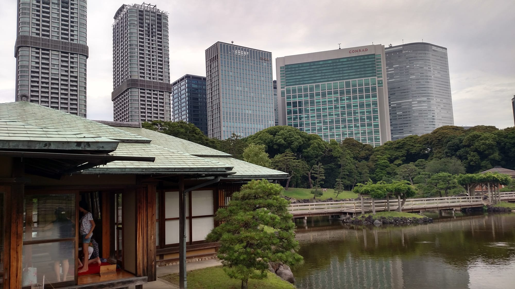 Tokyo paired enlightened housing policy with an impressive system of parks and green space even within the downtown core. For example, Hamarikyu Gardens is a short walk across a toll road from Shiodome (granted we got lost a couple times making it a longer walk) and it presented a striking contrast between nature and skyscrapers. The contrast is also between old and new: the park preserves its legacy as a Tokugawa shogunate retreat and later an imperial tea garden where world leaders of centuries past met to conduct diplomacy–now ringed with glass and steel monuments to Japan’s post-imperial progress.