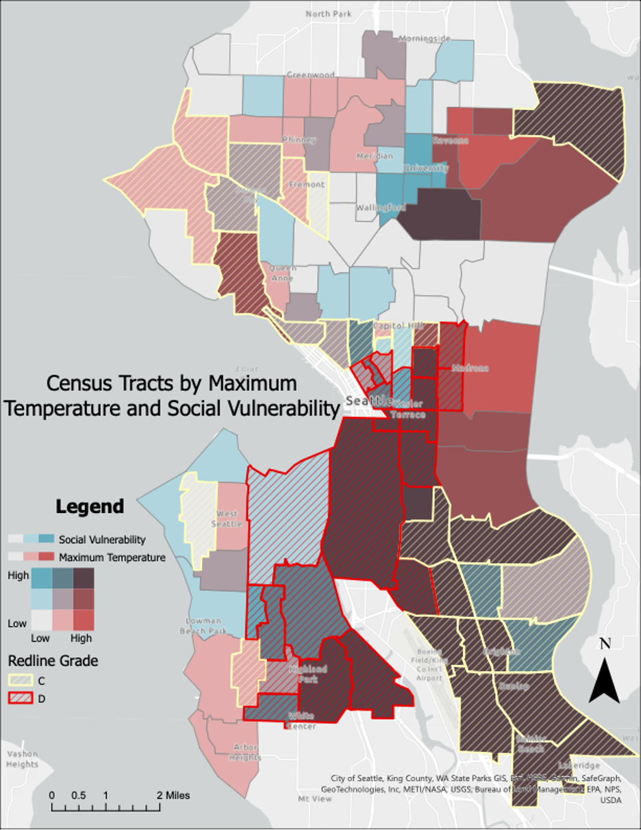 A hot summer day in Seattle may be scorching in the Central District, a historically Black neighborhood, while North Capitol Hill, home to many affluent White residents, catches a reprieve. Land use patterns across the city vary significantly, resulting in unequal access to climate adaptive resources such as large trees and greenspaces. Arguably, these land use patterns represent decades of disparate levels of investment linked to racist redlining policies.