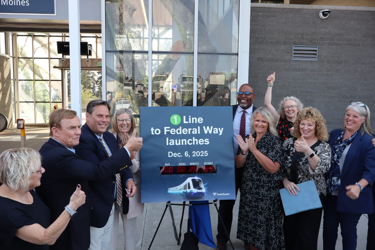 Light rail riders will be able to take 1 Line trains as far south as Federal Way starting December 6th, Sound Transit announced Thursday. The three-station extension will be the agency’s last expansion to the south until the Tacoma Dome extension slated for 2035. In addition to the “Federal Way Downtown” terminus, the extension adds stops at Kent Des Moines Road (near Highline College) and at Star Lake.