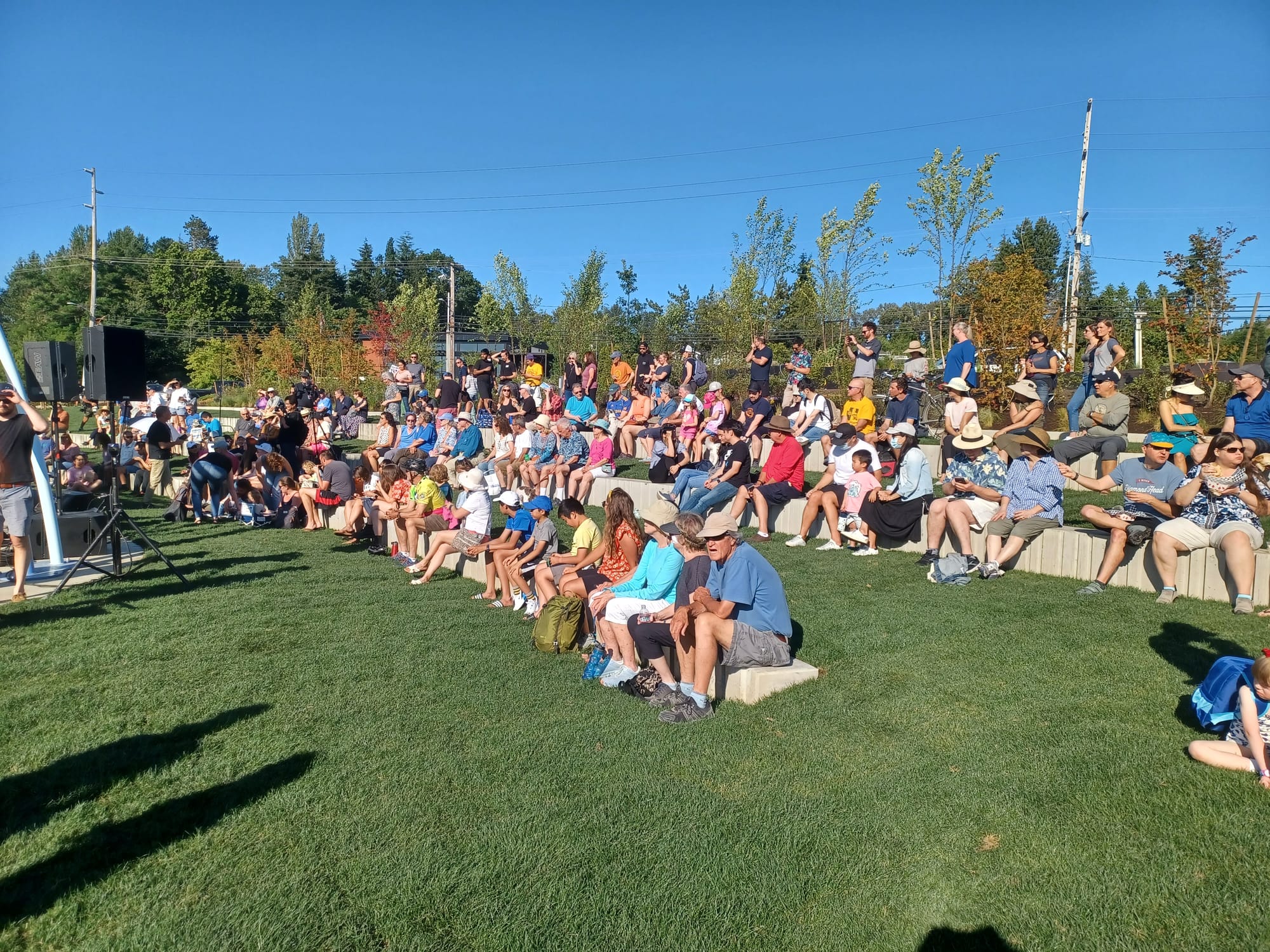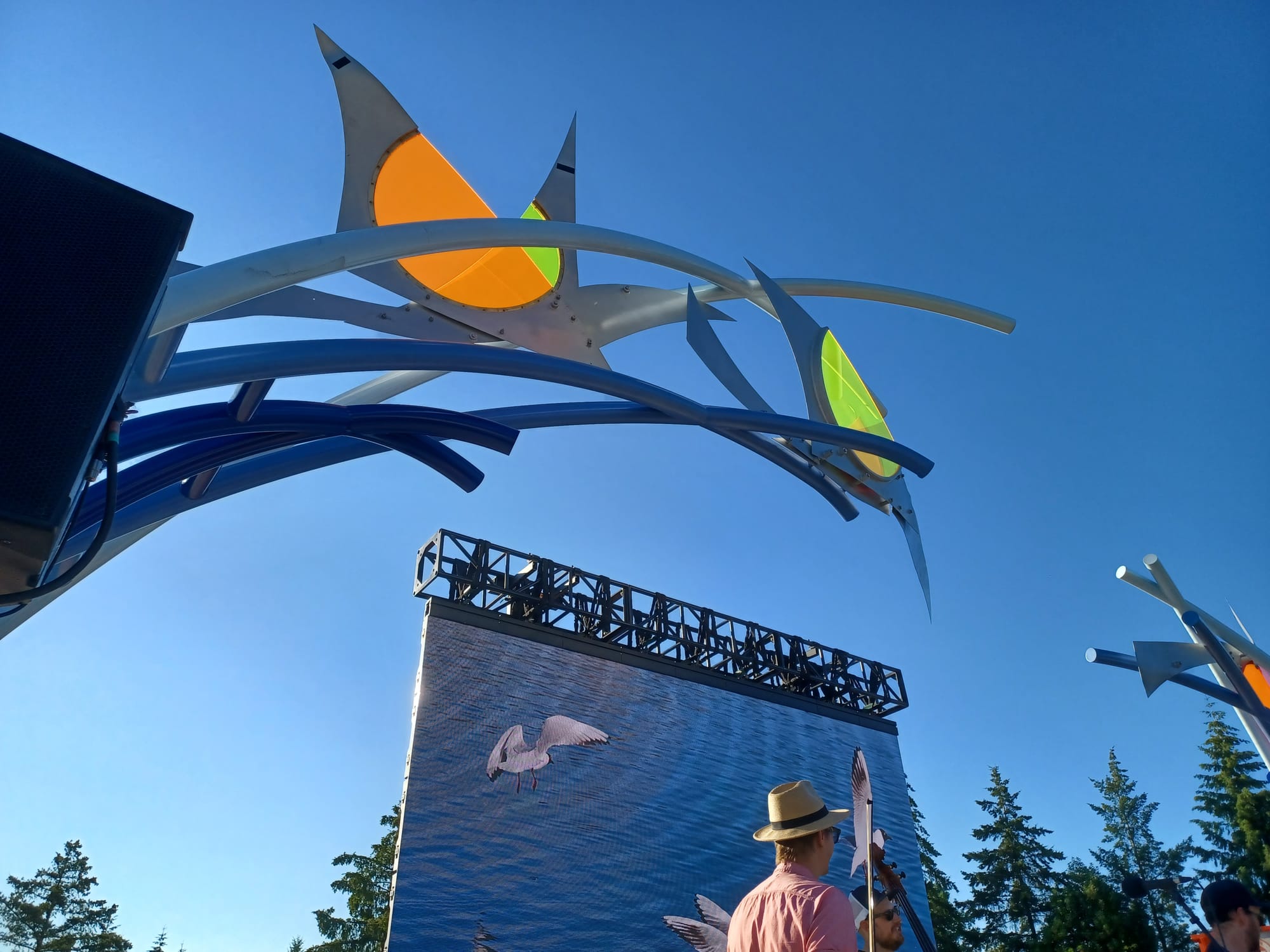 Paco Galanes, Google’s Site Lead, shared, “We are very proud of our partnership with the city to bring this new park here for all the people in Kirkland. We call Kirkland our home, and we hope to keep growing here.” Earlier this year, Google opened two new buildings at the nearby Kirkland Urban site, with two more to come in the next few years. Dave Thompson of SRM Development, the company behind the Feriton Spur project, pointed out the uniqueness of the trail-oriented park and introduced Amber Mikluscak, the artist contracted to complete a sculpture for the amphitheater. Parts were taken from the Kalakala, a ferry that operated on Puget Sound in the mid-20th century, and restored to create a colorful piece that’s over fifteen feet tall.