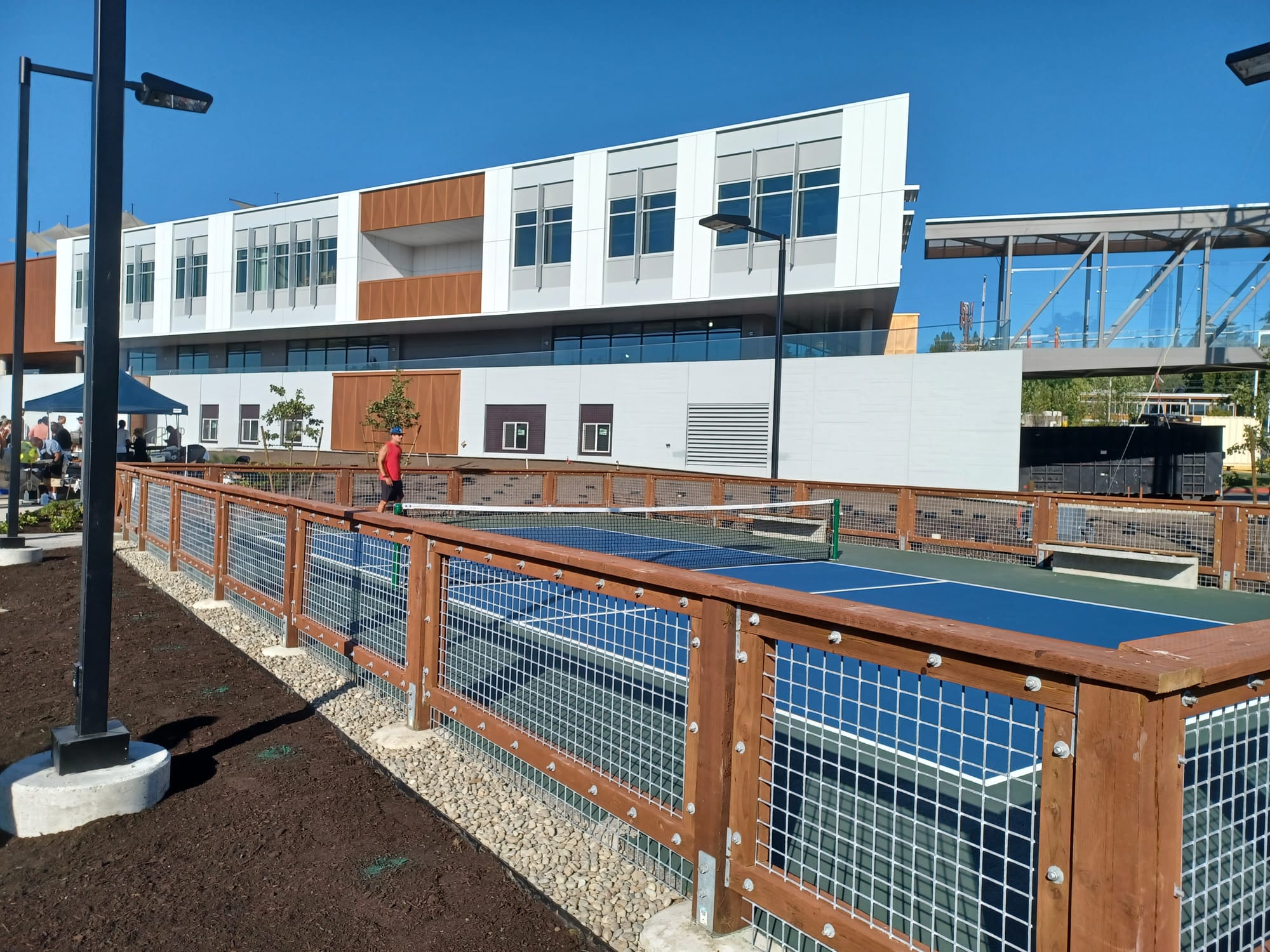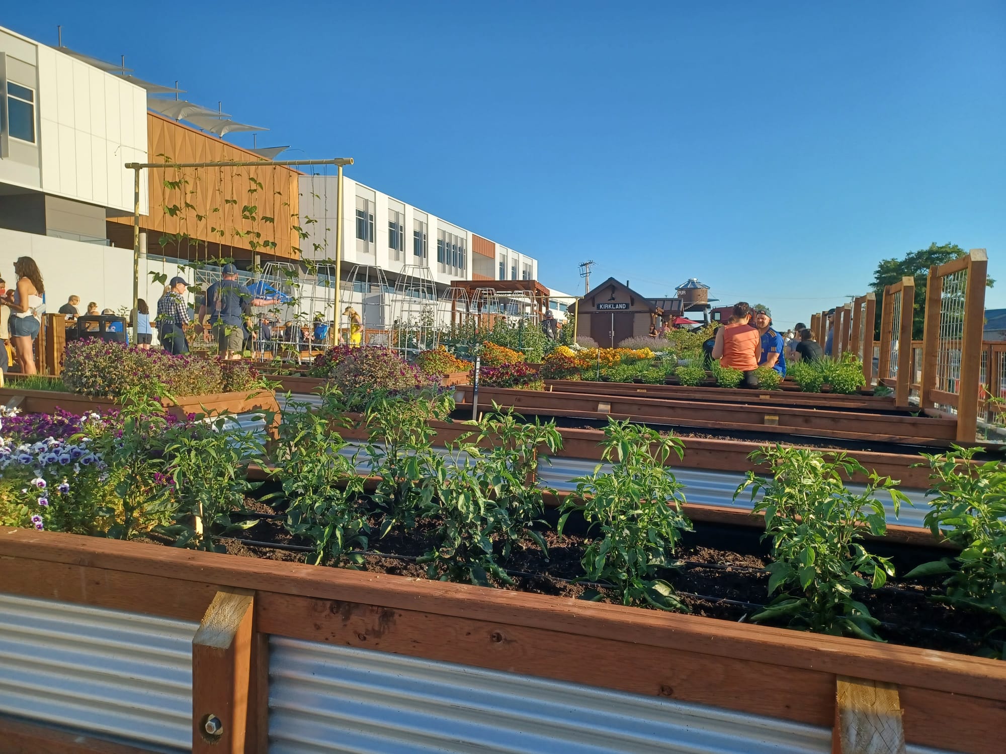 The newly expanded park contains a regulation-size pickleball court, a grassy amphitheater, a splash area, and a community garden operated by Seattle Urban Farm Company. Food from the garden is to be regularly donated to Hopelink, a nonprofit working to reduce poverty in King and Snohomish counties. Immediately adjacent to the garden is Chainline Station, a new location for Chainline Brewing Company that hearkens back to the corridor’s previous function as a key industrial railway. Alcohol is served out of an old Northwest Pacific Railway caboose, and visitors can imbibe inside the rail car or outside in the expansive beer garden, which has been modeled to look like a train station.