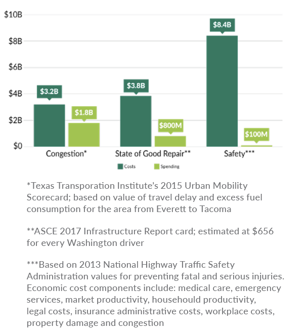 While the steep cost of repair work has deterred decision-makers from addressing I-5 earlier, the I-5 System Partnership believes inaction will only serve to increase longterm costs. That’s because I-5’s current condition is already taking a financial, environmental, and social toll on Washington State. According to the draft report, the cost of congestion to the state’s economy is estimated at $3.2 billion a year.