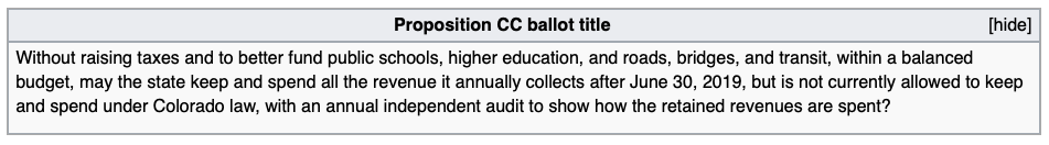 Nearly all of the funding for opposition campaign against Prop CC came from Americans for Prosperity Colorado Issue Committee, a group affiliated with the larger organization founded by the Koch brothers.
