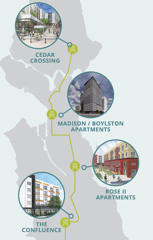 Many of the units are family-sized units offering two to three bedrooms. Benefitting from Sound Transit’s mandate to include affordable housing in its transit-oriented development (TOD) plans, all developments are located walking distance to planned light rail stations or frequent bus service.
