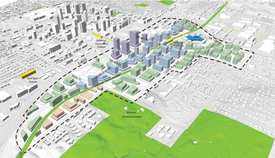 Bellevue is mulling an rezone proposal for the Wilburton neighborhood, which will have a light rail station when East Link opens in 2023, with comments on the Draft Environmental Impact Statement (DEIS) open until March 19th.