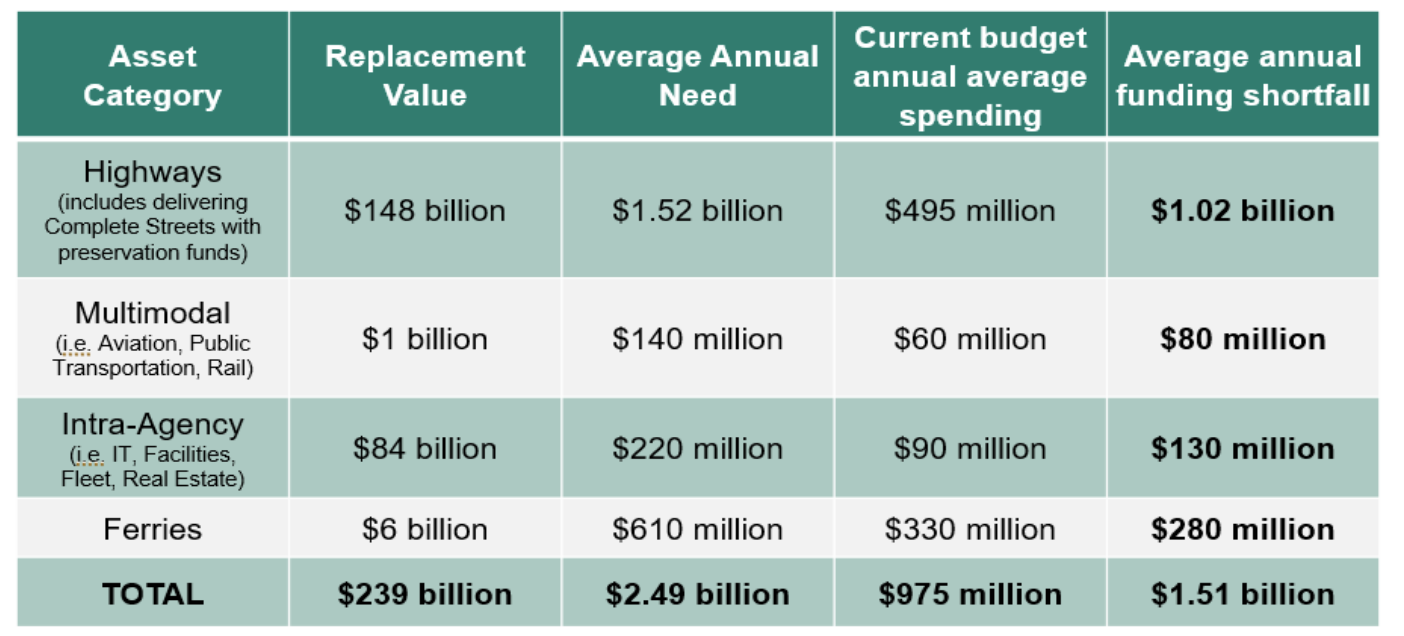 Thanks to the “Complete Streets” mandate the legislature passed in 2022, highway maintenance and preservation dollars are inextricably linked with safety upgrades, as WSDOT is required by law to bridge any bike and pedestrian network gaps when it completes nearly every type of major maintenance project. And so underfunding maintenance is delaying safety gains that could be coming to state highways while at the same time keeping the state behind when it comes to its significant maintenance backlog.