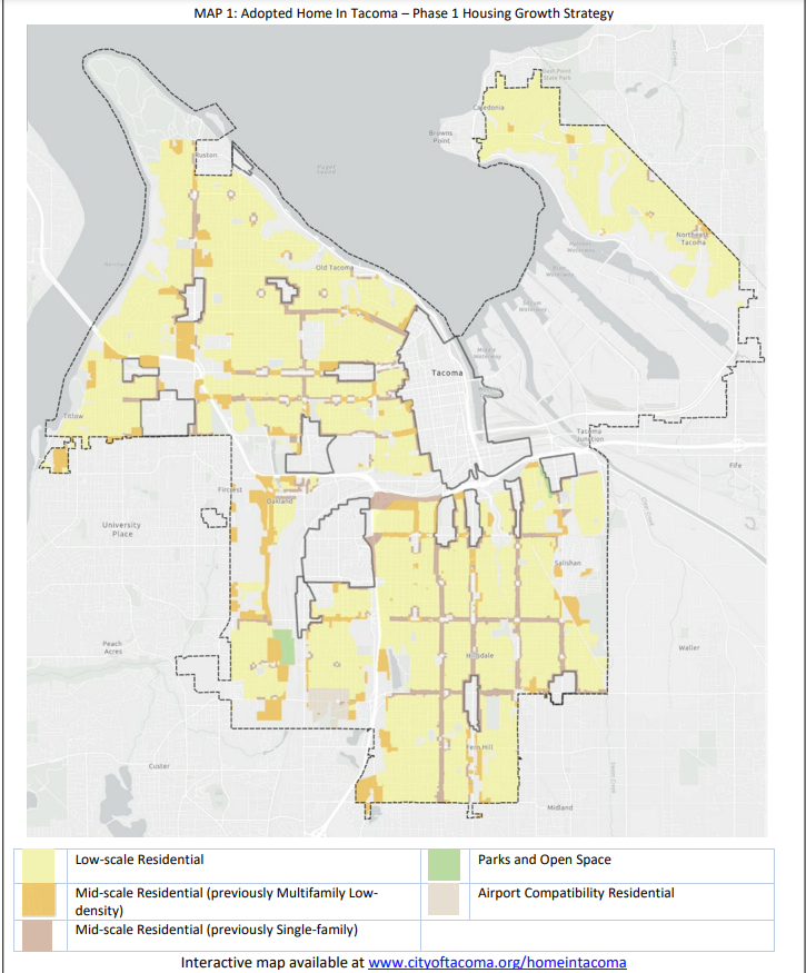 As a reminder, Home in Tacoma is a housing initiative to modify the city’s existing zoning regulations to increase flexibility in future building practices with the goal of creating more housing and further housing affordability. This would be accomplished through rezoning much of the existing single household zoning, which composes about 75% of Tacoma’s residential land. It would also allow homeowners and property developers to modify existing single household homes into multi-unit dwellings (duplexes, triplexes, and the like) or completely replace them with small apartment buildings up to three or four stories tall, depending on the location.