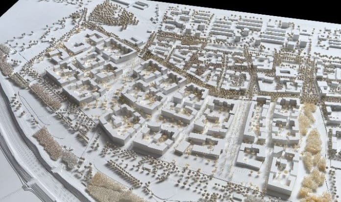 The city of Munich is presently developing a massive new sustainable district for up to 25,000 residents and 15,000 workers on the outskirts, called Freiham. It is intended to be “a city of short distances,” inclusive, sustainable, and car-light. The total site area is 350 hectares (865 acres) and features large parks and open space. The urban characteristics are largely perimeter block buildings of varied heights. Schools, restaurants, cafes, shops, offices, kindergartens are all worked into the plan. There will be two commuter rail stations (S-Bahn) at the north and south ends of the district, with an U-Bahn (subway) stop in the middle. In order to facilitate a social mix, half of the units will be social housing. Land is being awarded on concepts, and not on highest tender, with a focus on cooperatives, baugruppen/baugemeinschaften (10% of units!), and other forms of innovative non-market housing. This is one of the largest urban developments underway in Germany today, and is going to take years to finalize. (Planning documents can be found online.)