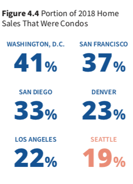 Remember those “Ballard Welcomes Our New Condo Overlords” bumper stickers that were so stick-a-knife in your gut funny back in 2008? Well it seems like we may have wanted to be a bit more welcoming to the condo set during the last decade—and not just in Ballard. In 2018, Seattle had some of the lowest numbers of condos sales in the country. Only 19% of home sales were listed as condos in Seattle, a number that is significant lower than in comparable cities.