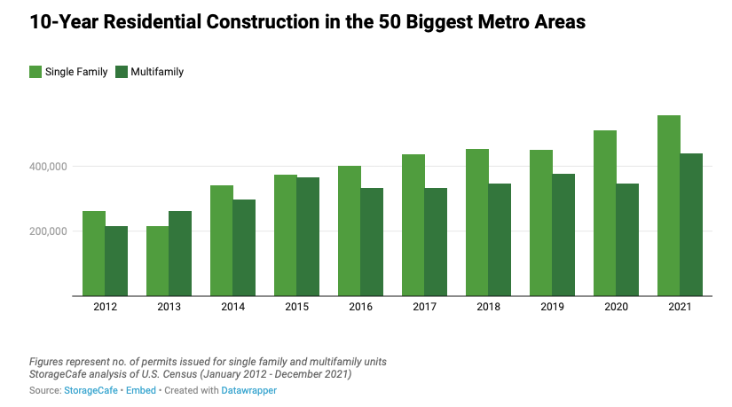 - Nearly 157,000 multifamily building permits were issued, ranking fifth in the nation in multifamily development behind New York, Dallas, Los Angeles, and Houston. That’s more than double the number of permits issued in the Portland metro area, where about 70,000 multifamily permits were issued in the last decade.