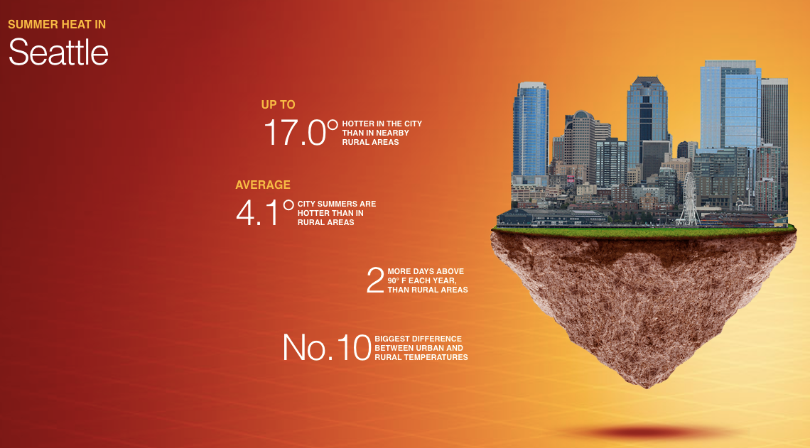 Fortunately, cities confronting hotter temperatures than Seattle’s have been experimenting with design techniques to combat urban heat island effect, and a growing body of evidence shows that these interventions can produce real cooling results. With increased awareness and deliberate, long-term planning, Seattle should be able to decrease existing urban heat inequities and become better equipped to face a hotter future.