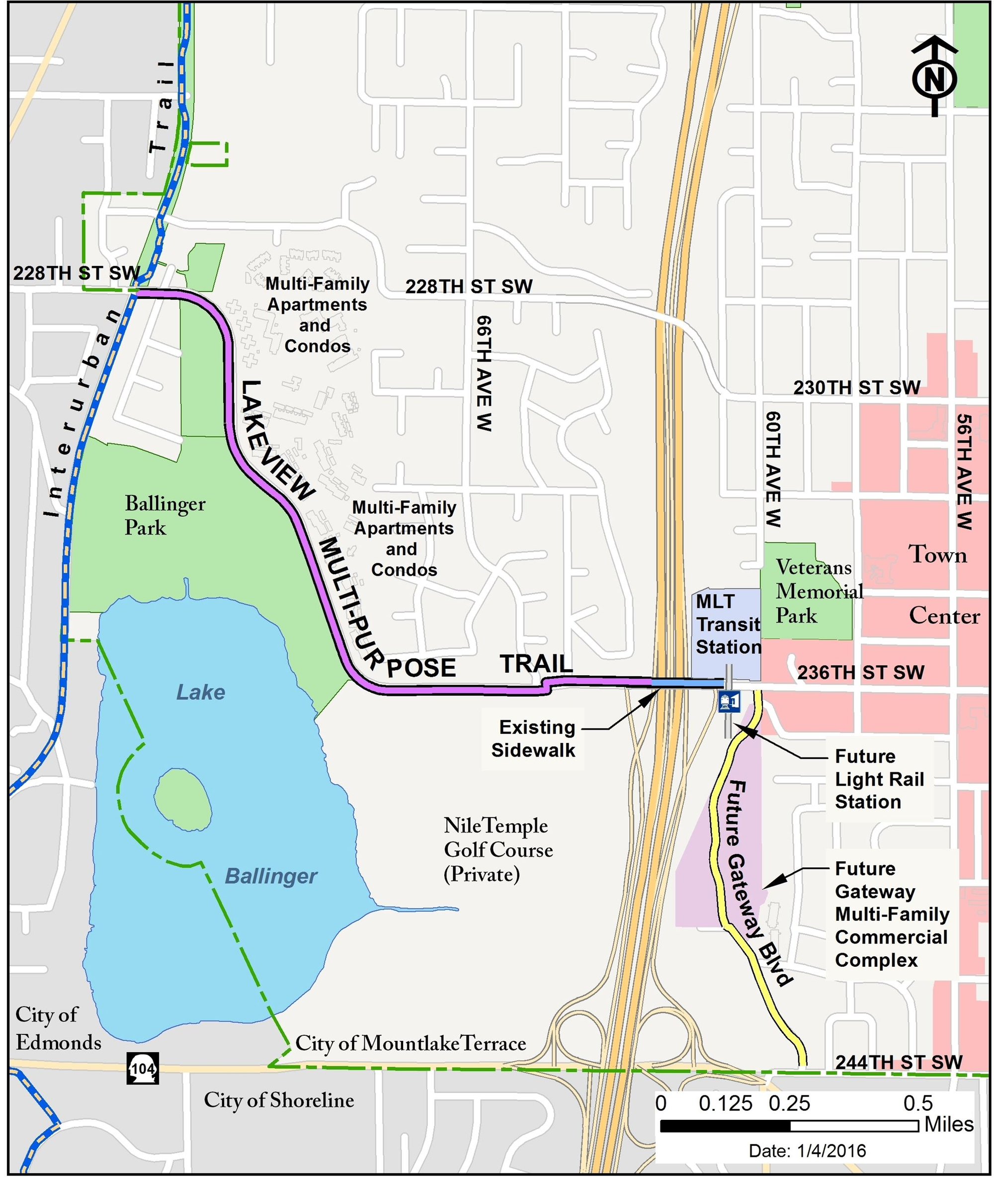 Another thing Mountlake Terrace did in anticipation of the growth around Town Center was build the Lakeview Trail connecting the existing Interurban Trail connecting north and south with the transit center. While more work needs to happen to connect the Interurban south into Shoreline, the Lakeview Trail provides an invaluable connection to Mountlake Terrace Station for people who are walking or biking. Opened in 2015, the trail was funded largely by a federal grant, secured by Governor Jay Inslee while he was serving in Congress.