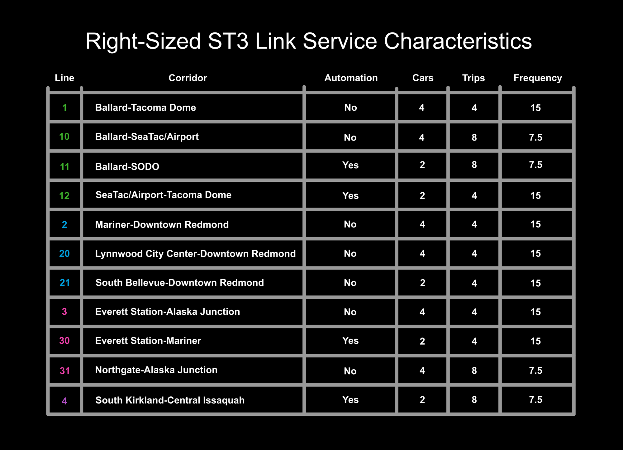 As part of this concept, some segments of Link could be fully automated. Those include Ballard-SoDo (11 Line), SeaTac/Airport-Tacoma Dome (12 Line), Everett Station-Mariner (30 Line), and South Kirkland-Central Issaquah (4 Line) since they won’t have conflicting at-grade crossing segments. Automating allows for more consistent service operations and lower operational costs since trains don’t have to be operated by a driver.