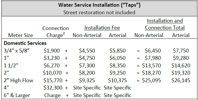 For one-inch water meters, which are commonly installed for a new housing unit, the fee is $7,980. For large apartment complexes, the fees can be in the hundreds of thousands.
