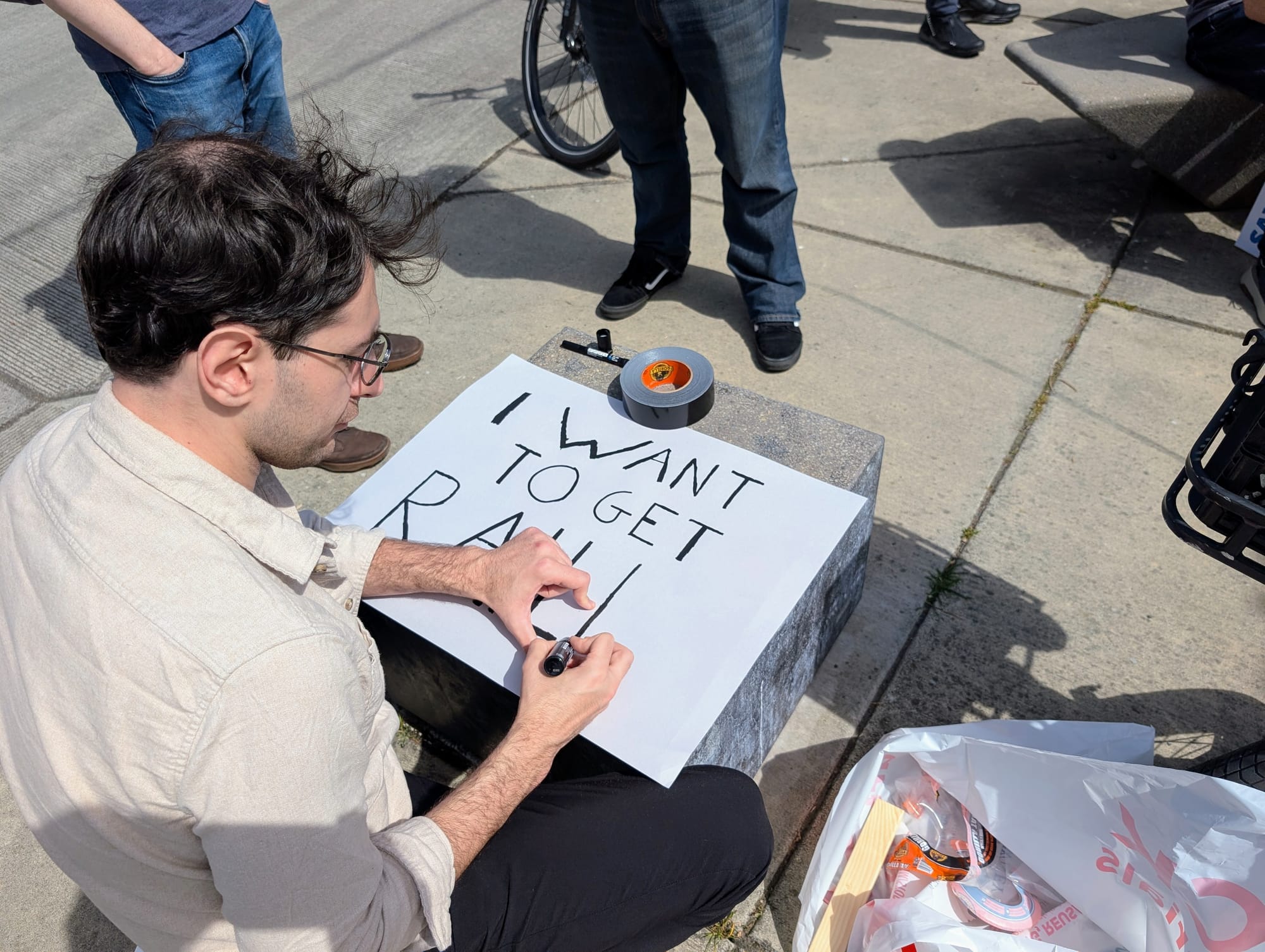 Seattle Councilmember Alexis Mercedes Rinck holds the megaphone. (Doug Trumm)