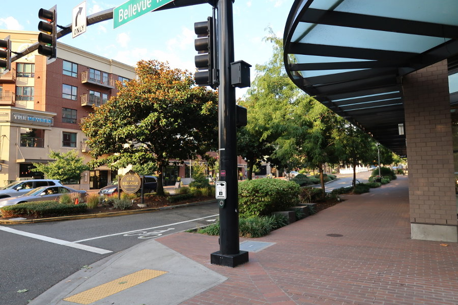 Already Old Bellevue is one of the most walkable, pleasant and upscale shopping streets in the city. The street is narrow, with trees in the median and trees and shrubs along the sidewalks. Traffic tends to move slowly. Several restaurants on the street have outdoor dining.