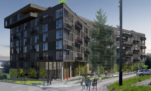 - A planned eight-story, 203-unit apartment building with 80 parking stalls.