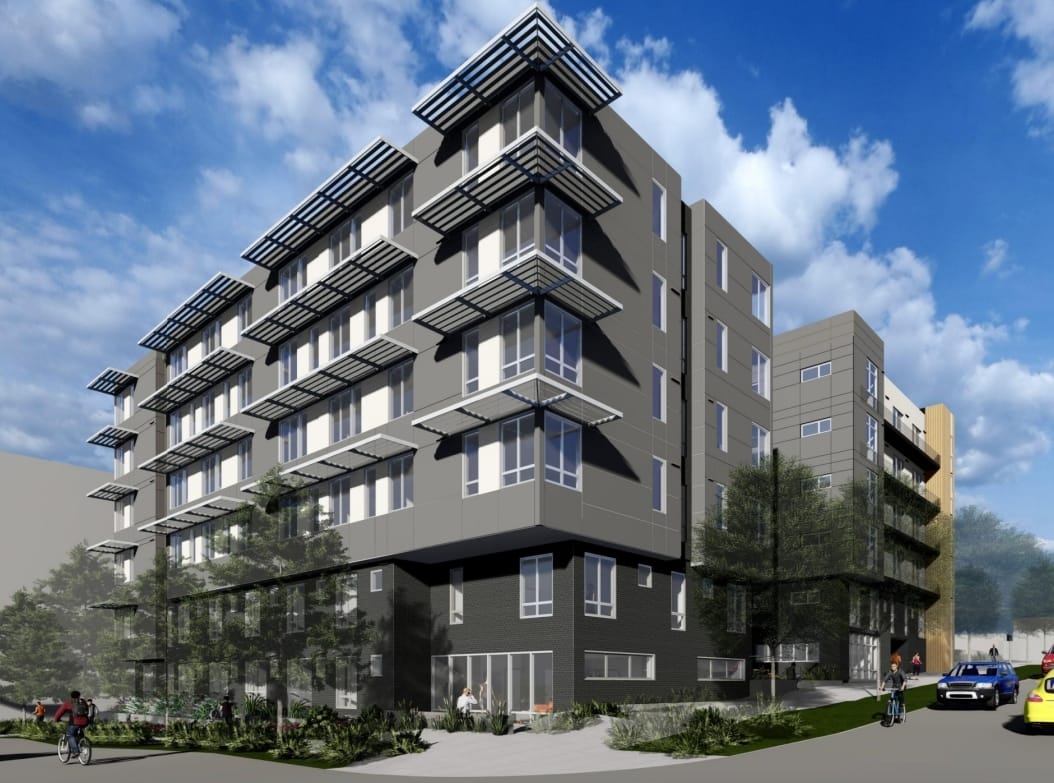 - A six-story, 177-unit permanent supportive housing building with a 7,096 square foot community center and 27 parking stalls. Operated by DESC.