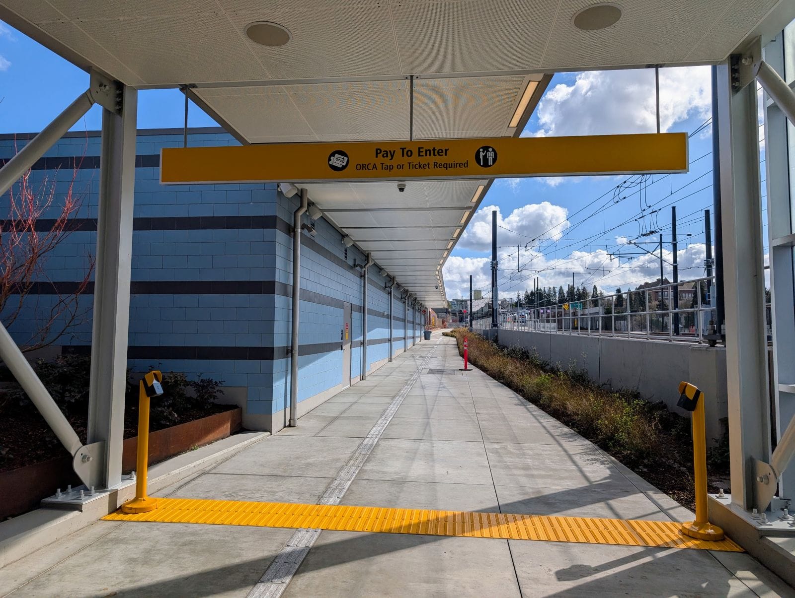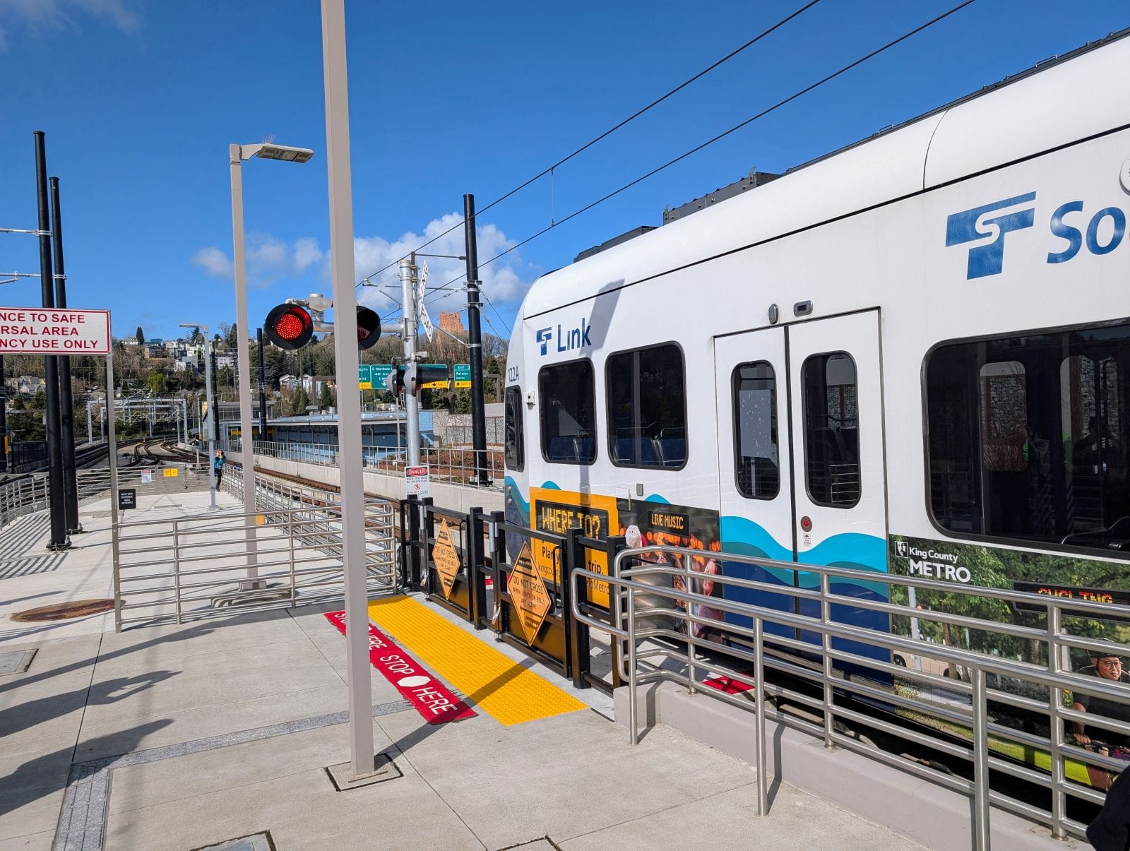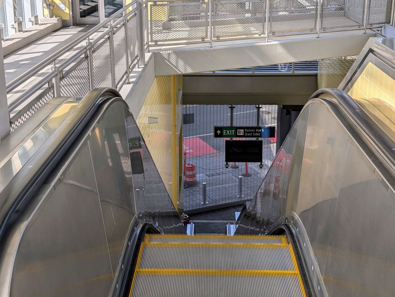 Even before reaching that unpleasant exit in a car-choked underpass, riders have a long, noisy walk from the station platform, which includes crossing the light rail tracks at grade. The gated rail crossing adds a delay if a train is passing, letting riders enjoy the din of I-90 a bit longer.