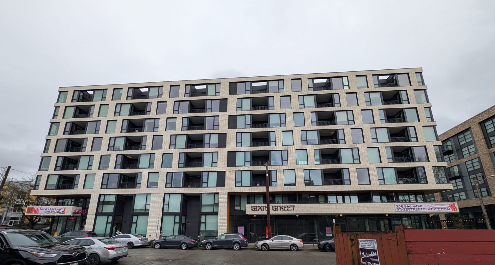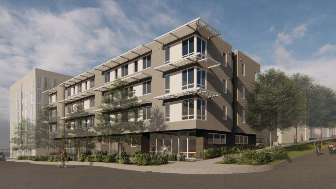- An eight-story, 158-unit mixed used building with around 4,000 square feet of commercial space and 64 parking stalls. Around 40 of the housing units are income-restricted.