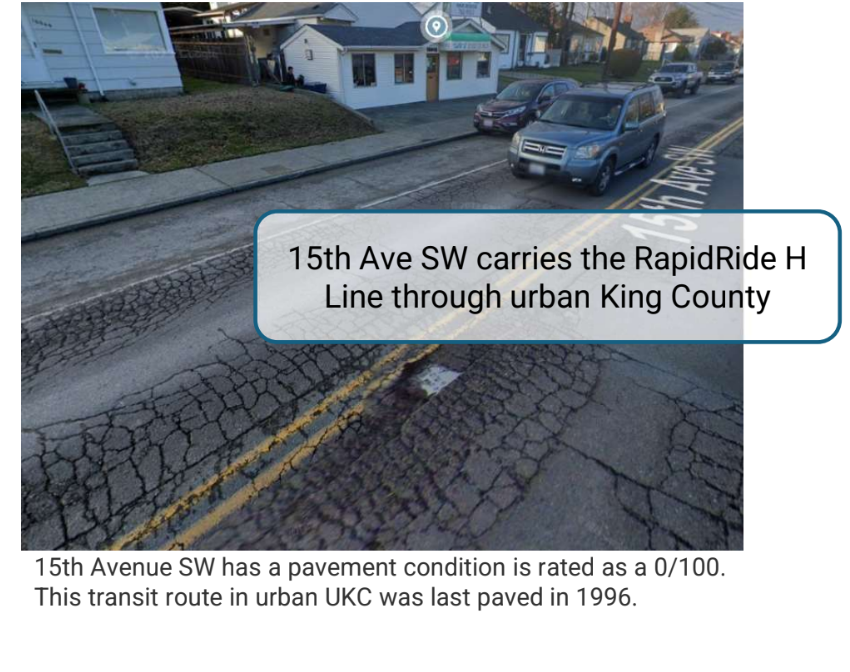 Mosqueda brought up the need to make safety improvements on unincorporated roads, many of which lack basic accessibility infrastructure. Currently, King County spends around 0.03% of the amount needed to upgrade its roadways to full Americans with Disabilities Act (ADA) standards, a pace that means full compliance wouldn't come for more than 3,600 years.