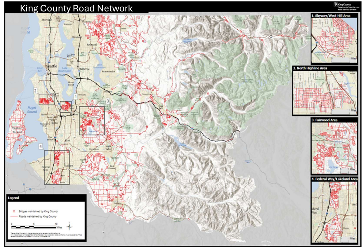 The 0.1% sales tax increase, which would bring the total sales tax rate in Seattle (the city with the highest rate) to 10.65%, is expected to generate around $100 million per year in additional revenue. That's less than half of what King County says is needed to fully maintain its approximately 1,500-mile road network, primarily concentrated in the eastern part of the county but also on Vashon Island and in areas like Skyway, White Center, and Fairwood.