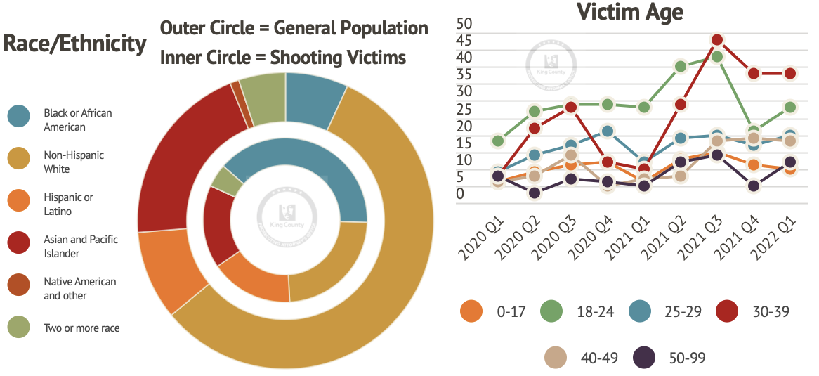 Lisch explained that most gun violence programs are targeted to youth and young adults, and because of restrictions related to funding, they cannot necessarily provide services to people who fall outside of that age range. Additionally, Lisch explained that the types of incidents have become more varied in recent years with shootings at homeless encampments, domestic violence disputes, and suicides making up a rising share of gun violence in King County.