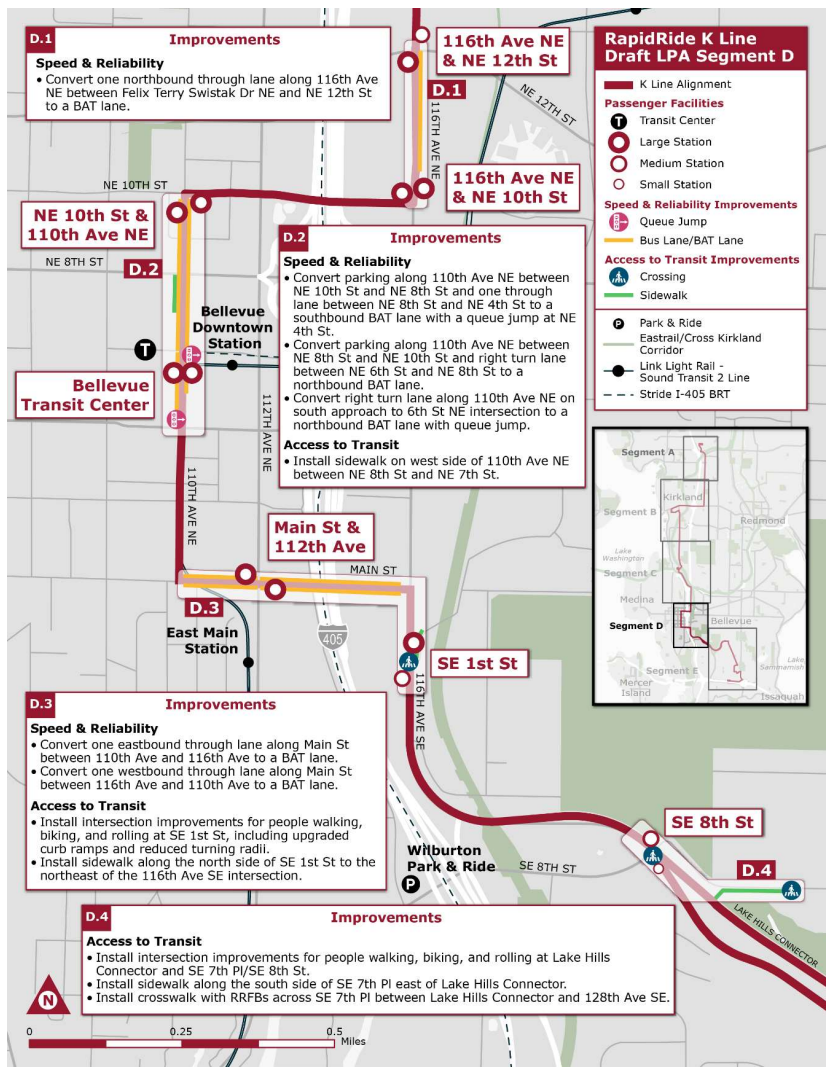 This week the Bellevue City Council unanimously voted to send a letter supporting the K Line LPA, after another unanimous vote of the Kirkland Council last week. Those twin votes cap off months of discussions about the extent of transit improvements along the future K Line, which will be the first RapidRide line to open on the Eastside since the B Line between Bellevue and Redmond in 2011.