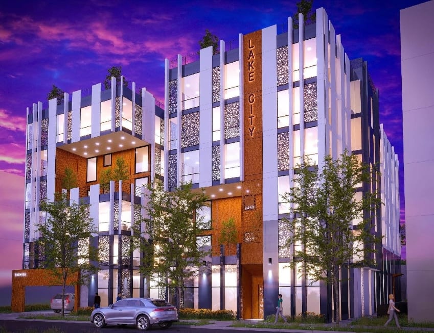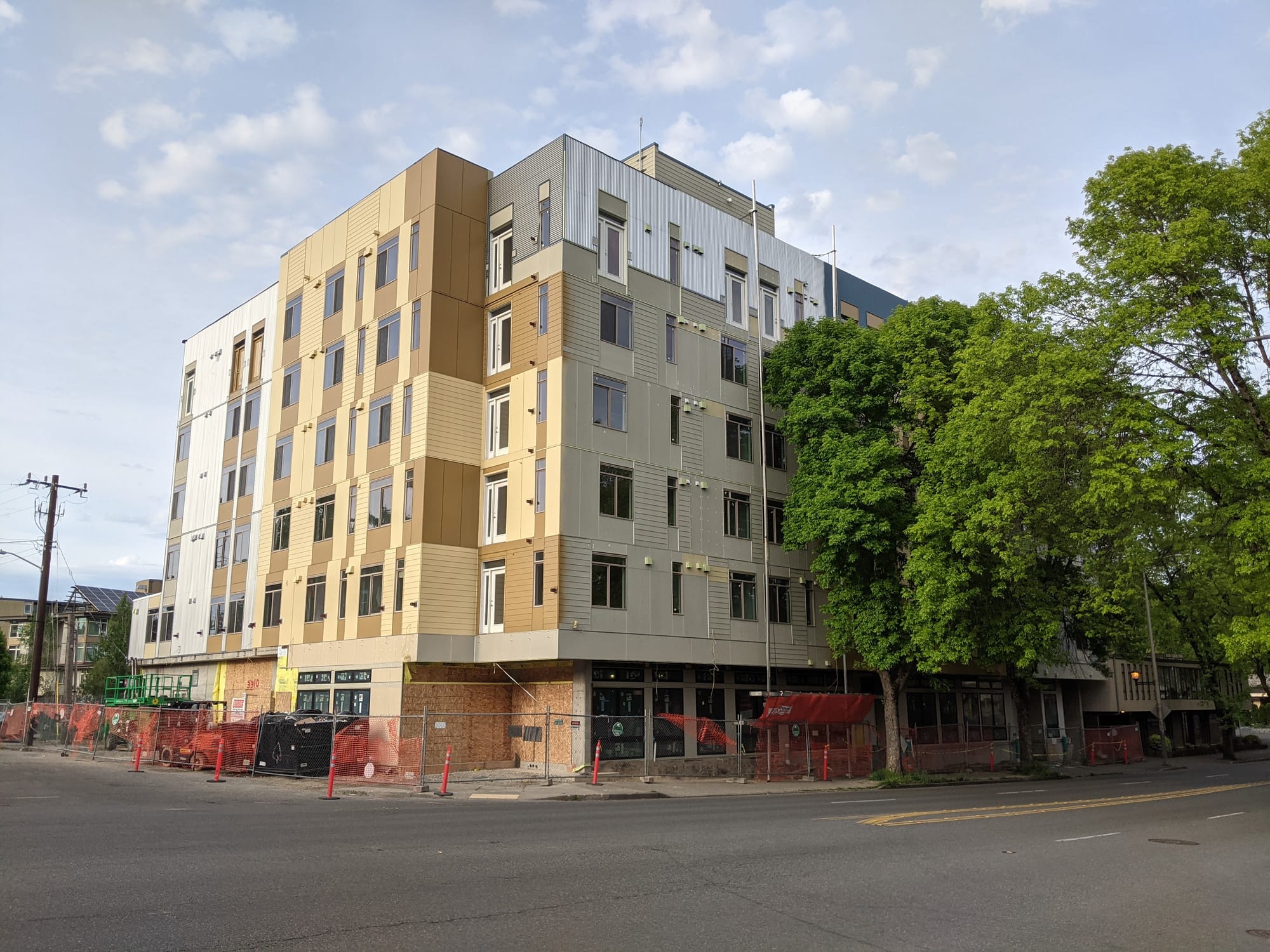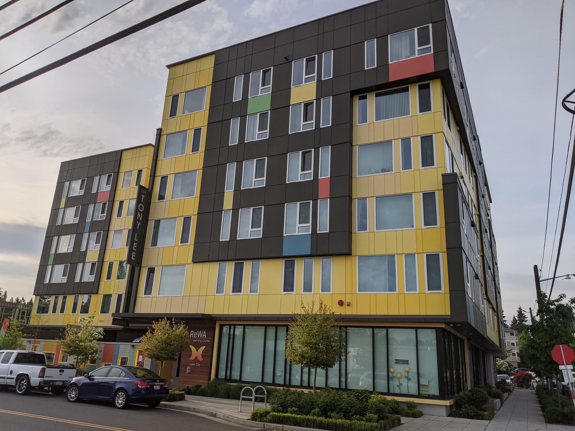 Long predominantly flanked by auto dealerships and auto shops, parking lots, and single-family homes, Lake City Way is seeing an influx of multifamily development. This corridor links the Lake City hub urban village with Roosevelt and Seattle’s northeastern suburbs. Upzoned in 2019 when Mandatory Housing Affordability (MHA) went citywide save for single-family zones, the City now allows the vast majority of the corridor to develop taller residential and commercial buildings.
