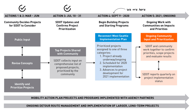 These improvements came alongside the completion of the Reconnect West Seattle Implementation Plan, which received 17,000+ responses during the process’s outreach phase. The plan’s Phase 1 through 3 (March-July) progress include 175 changes, the agency is currently working on priority projects that can be delivered within their current constraints. SDOT outlines their community-influenced planned actions in their Reconnect West Seattle Implementation Plan (Action 4) Document.