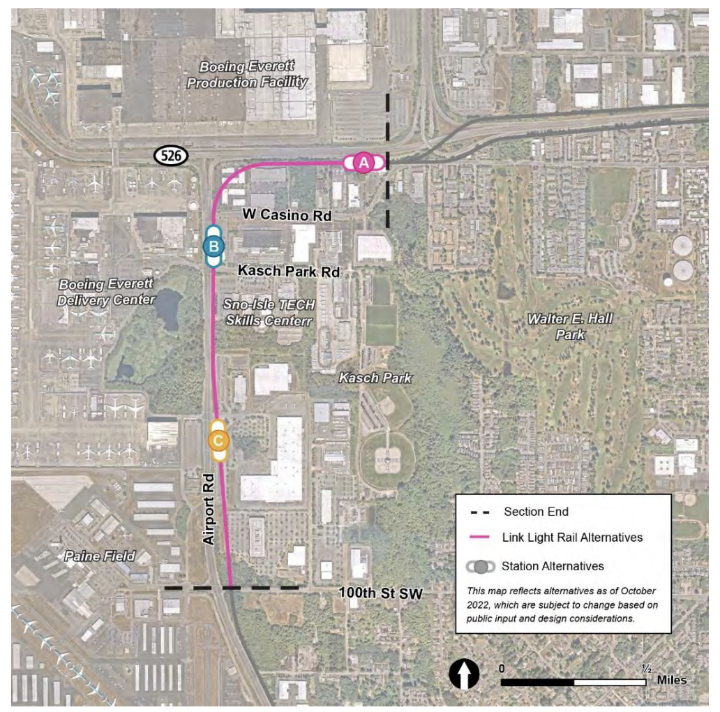 If the Sound Transit board proceeds with the remaining corridor options rather than a wider look, the body should also select the following options as the preferred ones:ALD-D for Alderwood West;ASH-D for Ash Way;MAR-B for Mariner;AIR-A or AIR-B for SR 99/Airport Road (unfunded provisional station);ENG-D or ENG-B for SR 526/Evergreen;BRD for the stationless I-5/Broadway segment;EVT-A for Everett Station; andSite F for OMF North.These options maximize the potential to tame dangerous roads, facilitate walk-to-station ridership, connect with other area transit options, encourage land use compatibility, support future infill station options, and avoid technically challenging properties and corridors.A broken process that never should have happenedTaking an excessive amount of private property to build an urban rapid rail system is not a best practice. It is an expensive and myopic folly that begets complicated, delayed projects and leaves a wake of destruction behind it.Unfortunately, Everett Link plans are using the bluntest, one-size-fits-all highway building approach to transit. Blame for that falls on elected leaders who have been steering the ship to run aground. But blame also falls on Sound Transit for structuring a process that has enabled such myopic decision-making, threatening displacement and subpar transit outcomes because of a failure to course correct and live with tradeoffs.Snohomish County should be getting the very best for the billions it will be spending on the Everett Link Extension. Building a lot of mileage of track will be a mere consolation prize though if communities get very little local connectivity to go with it. With an average station stop distance reaching 2.7 miles and spending potentially topping $1.5 billion per station when all is said and done, Everett and Snohomish County is on course to have very little to show for all the years fighting to complete the spine.Ultimately, to call the Everett Link planning process to date “flawed” would be the kindest of descriptions. But the Sound Transit boardmembers could change that. It’s up to them whether it stumbles clumsily and foolishly into environmental review to create costly generational mistakes, or is straightened out to serve generations of Snohomish County residents well.