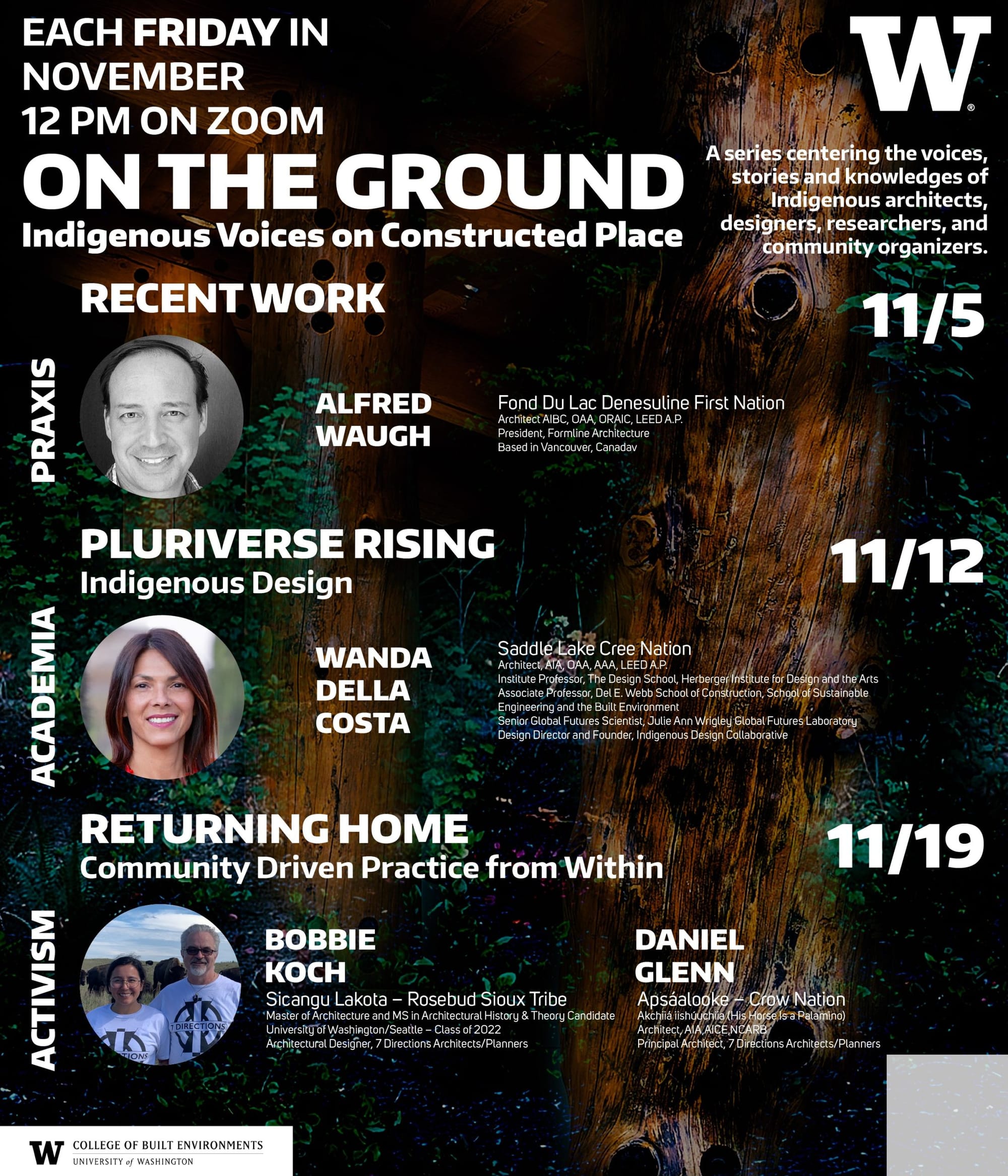 This November in celebration of National Native American Heritage Month, the University of Washington Department of Architecture is presenting a lecture series titled “On the Ground: Indigenous Voices on Constructed Place.”