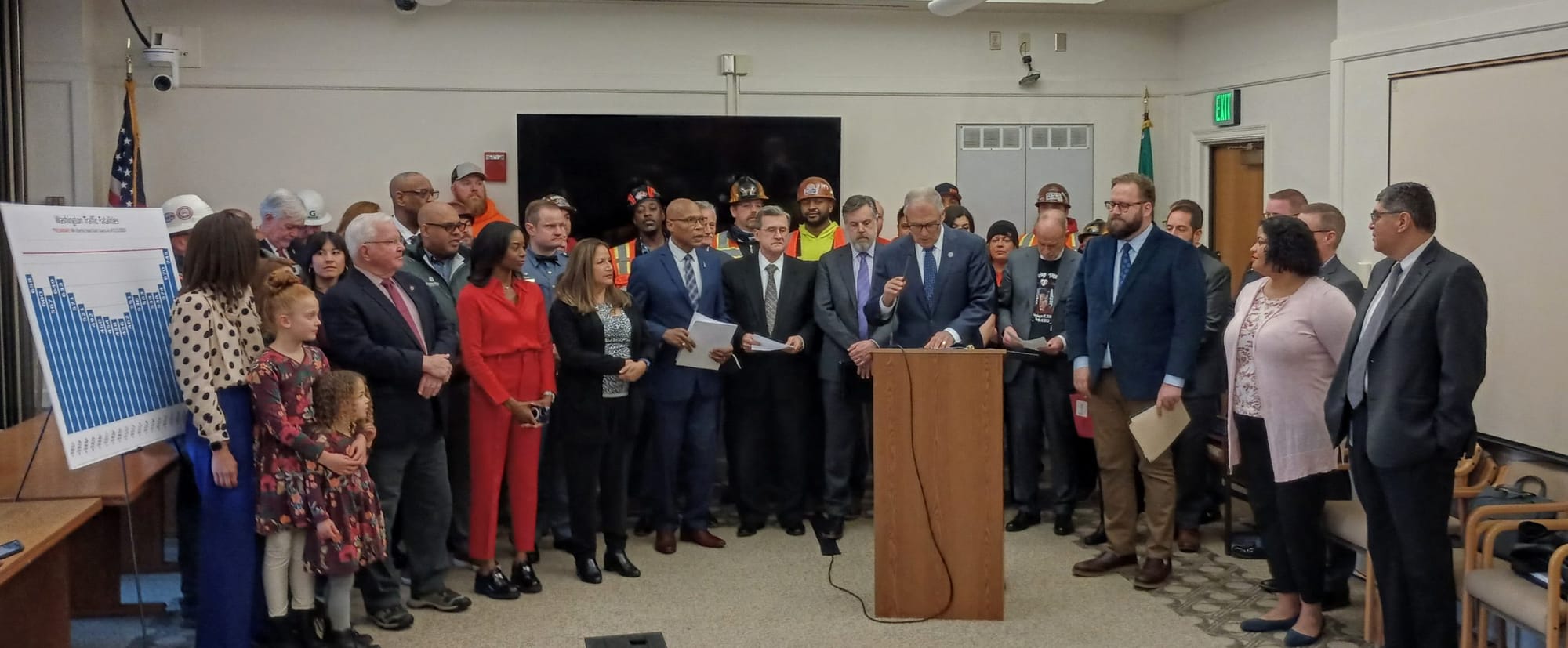 In late January, a group of lawmakers from both the Washington House and Senate, Democrats and Republicans, joined Governor Jay Inslee in a legislative conference room to announce that reducing traffic deaths on the state’s roadways would be a major priority for the 105-day legislative session. Looming over the group was a large poster, depicting the number of lives lost in Washington by year: the chart spiked in 2022, with an estimated 745 fatalities.
