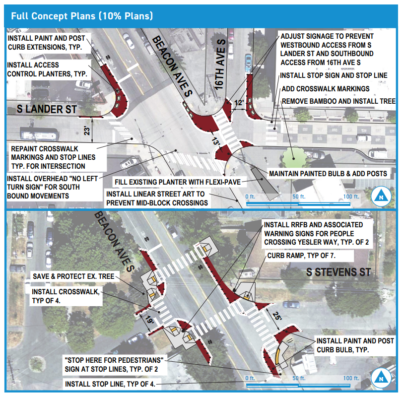 This $480,000 project would improve crossings near Beacon Hill Station on top of a full signal that was finally added to Lander Street outside the station entrance last year. Curb bulbs would reduce crossing distances.