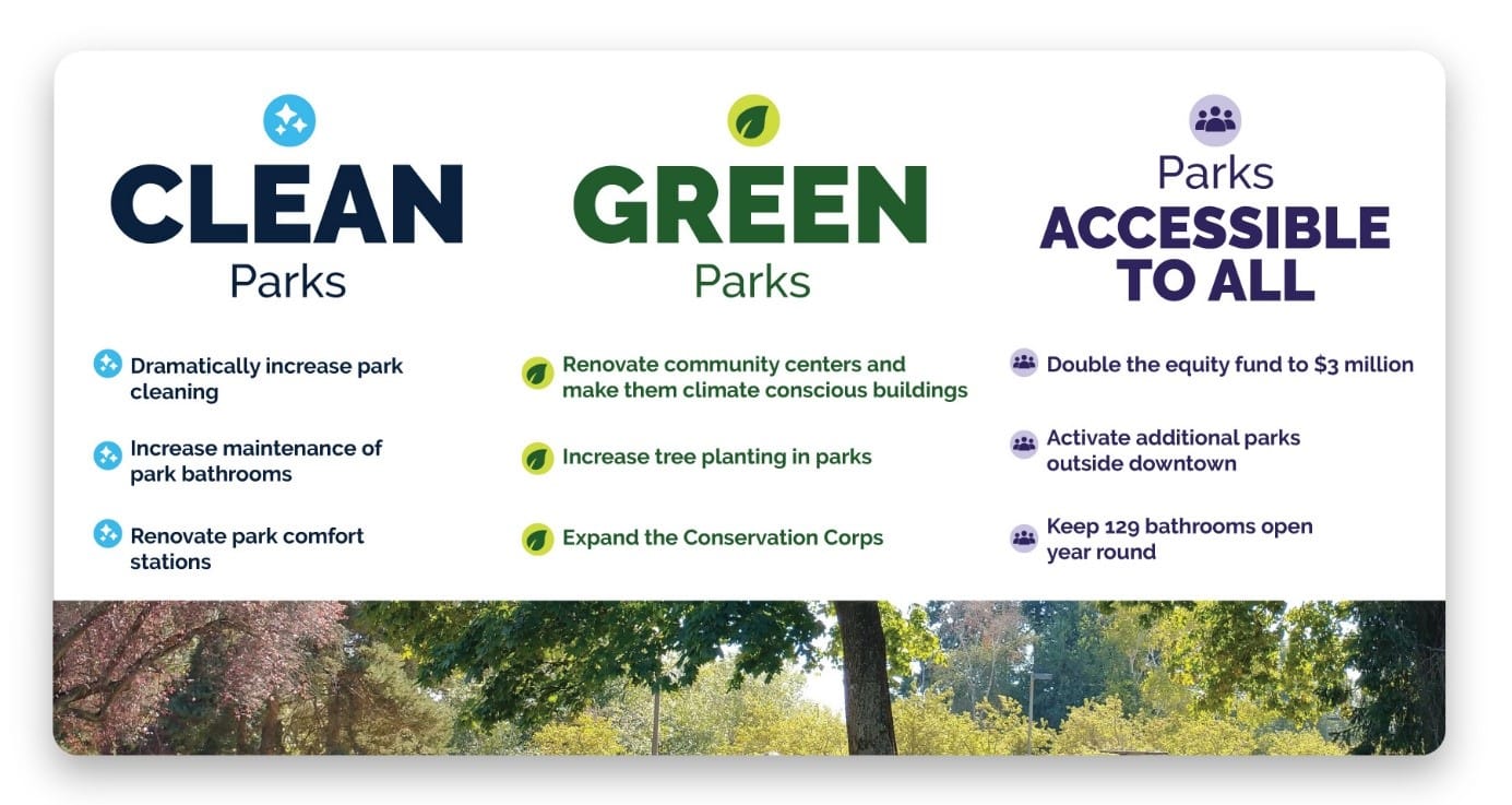 “This funding plan maintains the investments proposed by Mayor Harrell and builds on them with additional supports for a funded mandate to make our parks clean, green, and accessible to all. Partnership between the Mayor and Council is essential for us to build on our mandate from the people of Seattle for the action-oriented change they expect from their leaders,” said Lewis during a press conference in Pioneer Square’s Occidental Park. “Today’s proposal is also the result of extensive public engagement: 14 public meetings, over 300 in-person public comments, 20 formal requests from organizations, and more than 500 emails, letters, and messages.”